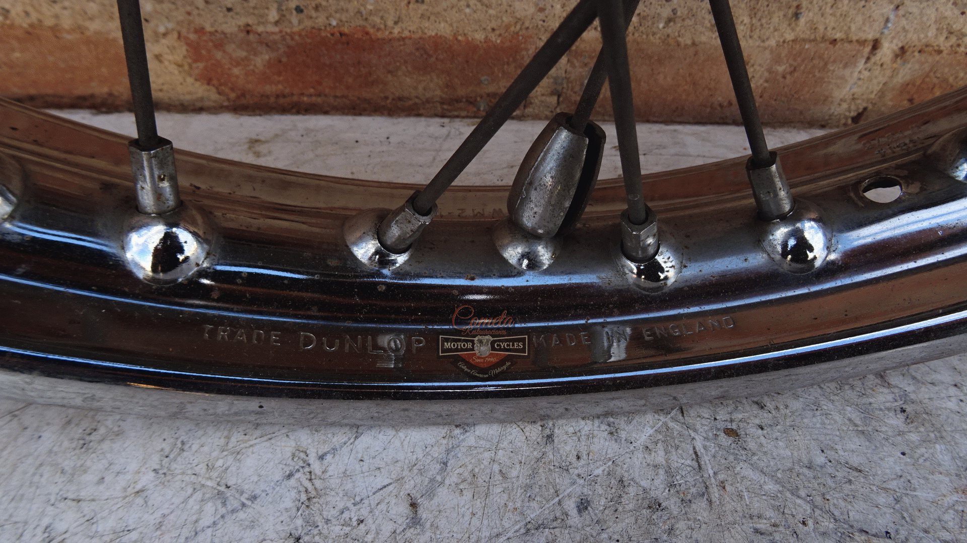 TRIUMPH T100C / T100T / T100R / T100S / 3TA / 5TA / 500cc 350cc rueda / buje delantero 8 pulgadas con llanta de acero Dunlop , creo que es nueva de la epoca se ve todo muy nuevo . años 1966 a 1968