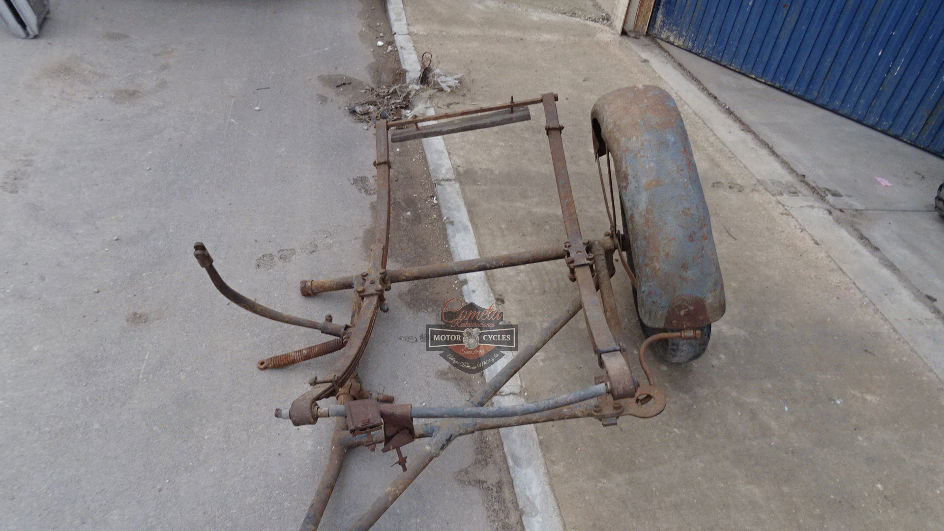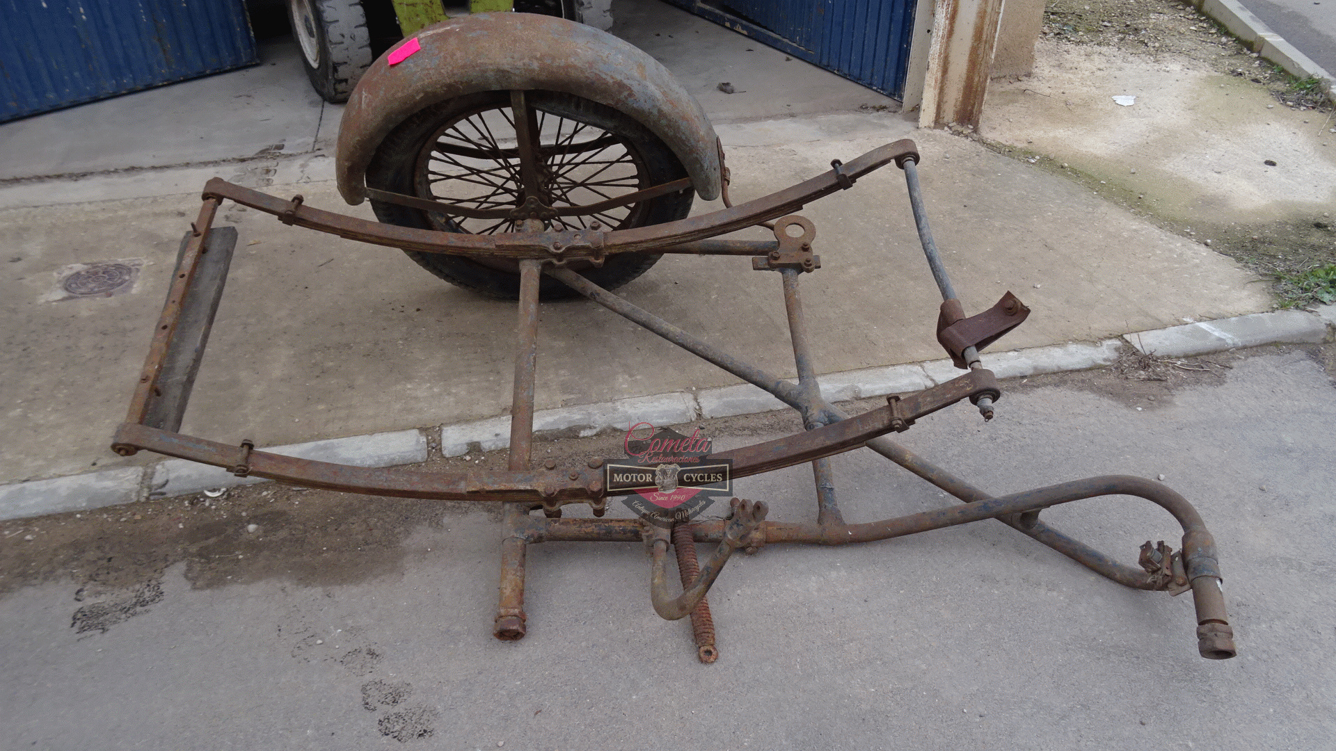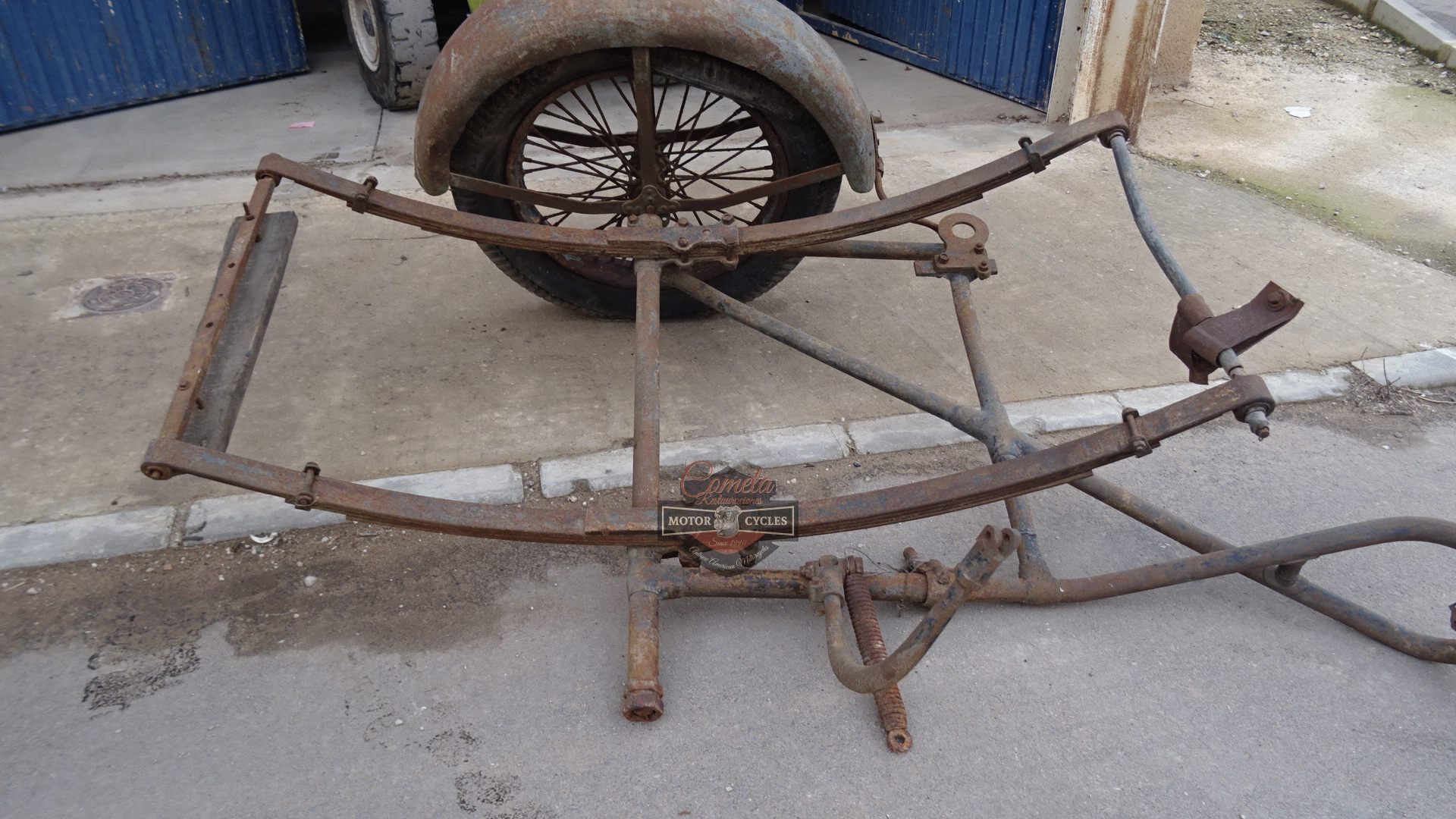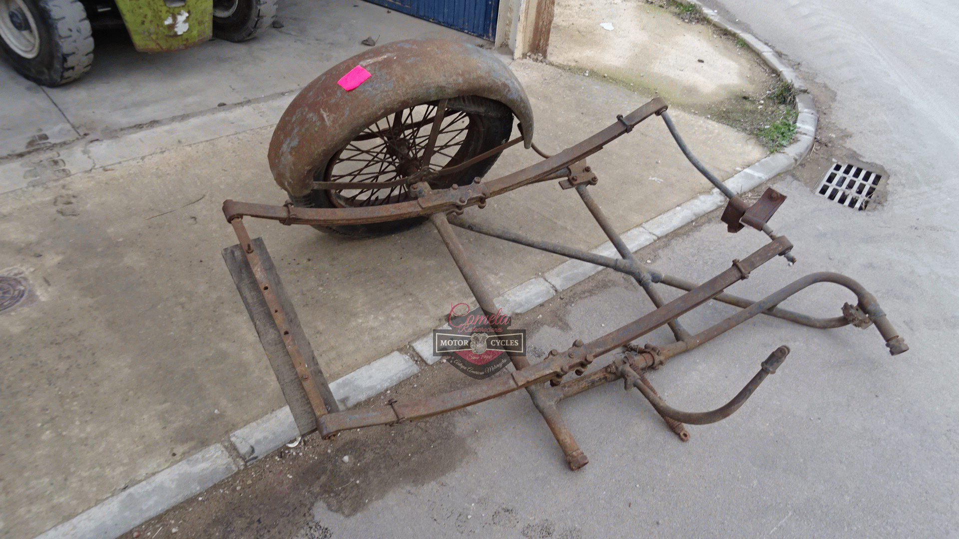 HARLEY DAVIDSON J JD bastidor / FRAME sidecar lado izquierdo con rueda y FENDERS MUDGUARD años 1925 / 1926 / 1927 / 1928 / 1929 HARLEY DAVIDSON J JD frame/chassis sidecar left side with wheel and mudguard years 1925/1926/1927/1928/1929