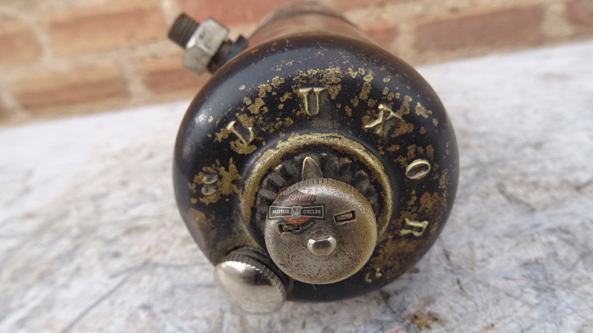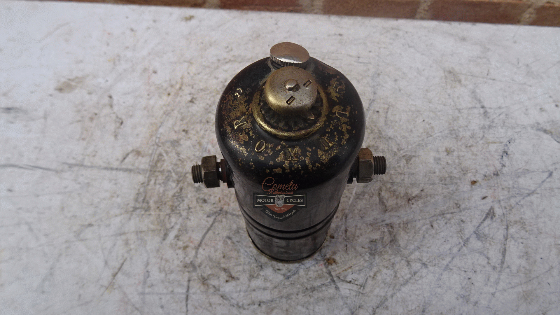 deposito de carburo de la marca LUXOR esta en muy buen estado para motocicletas años 1915 a 1928 LUXOR brand carburetor in very good condition for motorcycles from 1915 to 1928