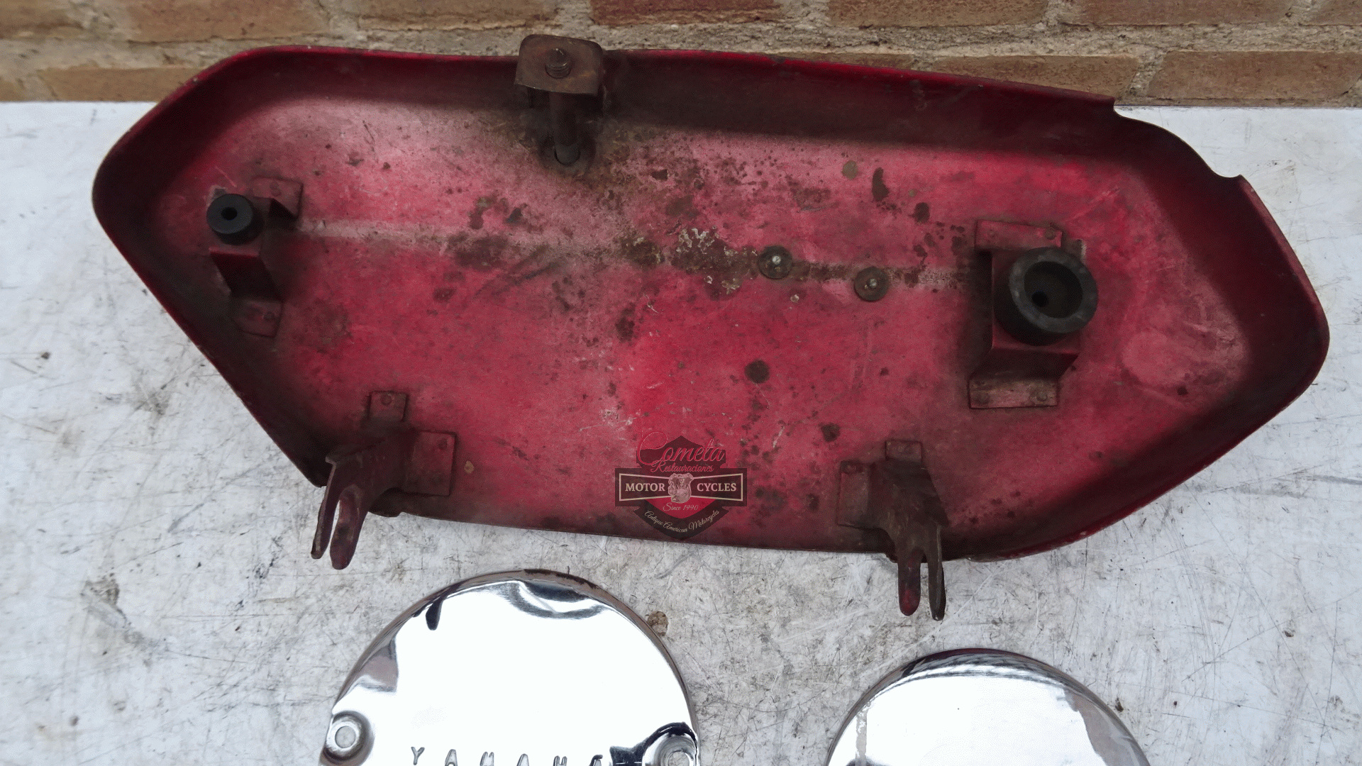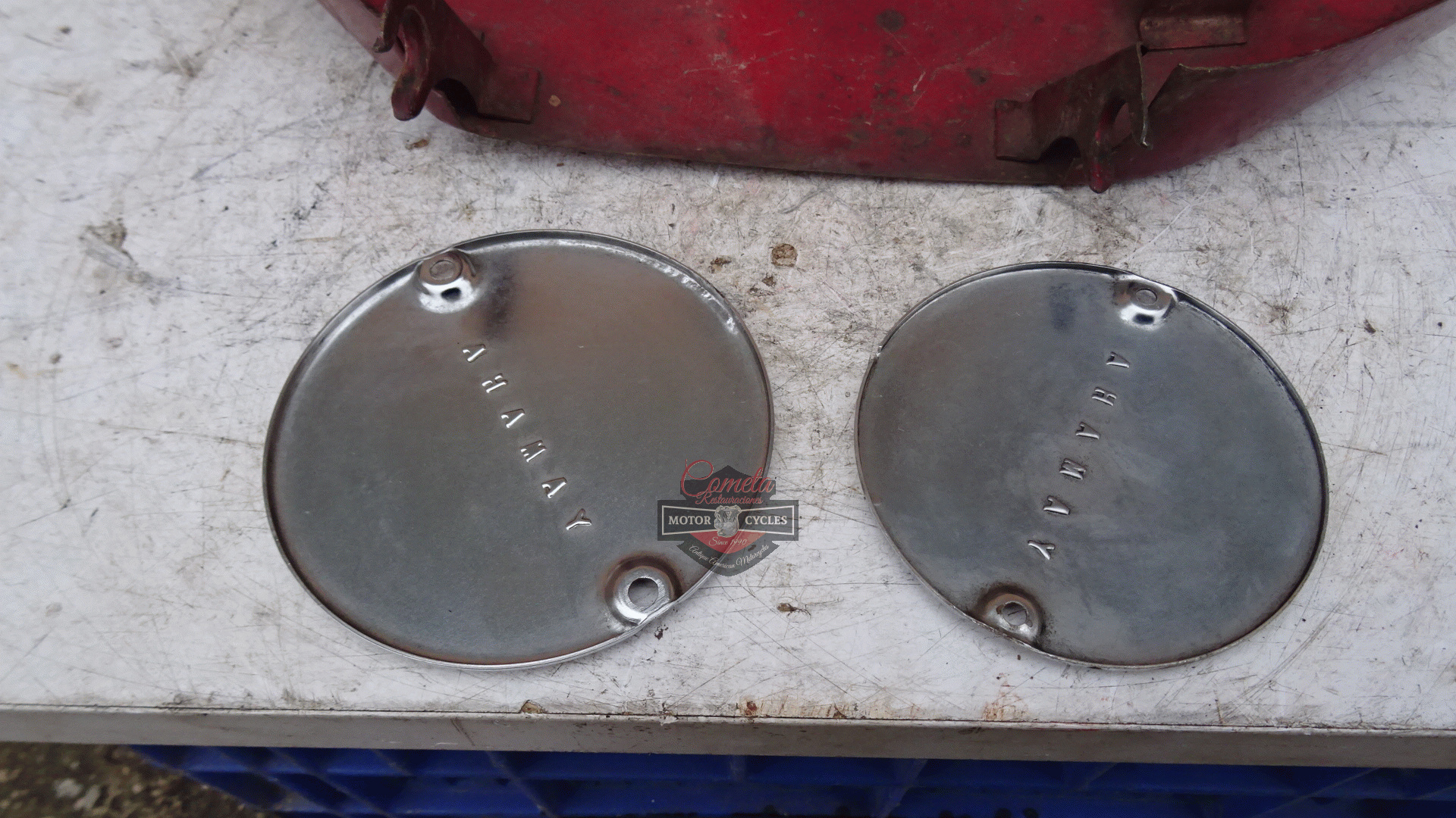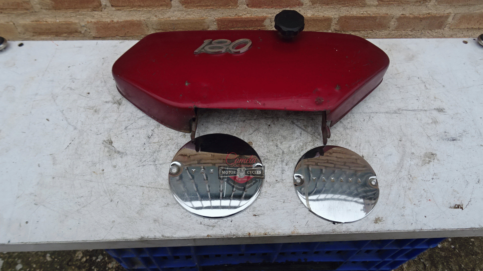 tapa lateral izquierda , y tapas laterales de motor cromadas originales YAMAHA YCS1 / CS1 180 BONANZA años 1967 / 1968 / 1969