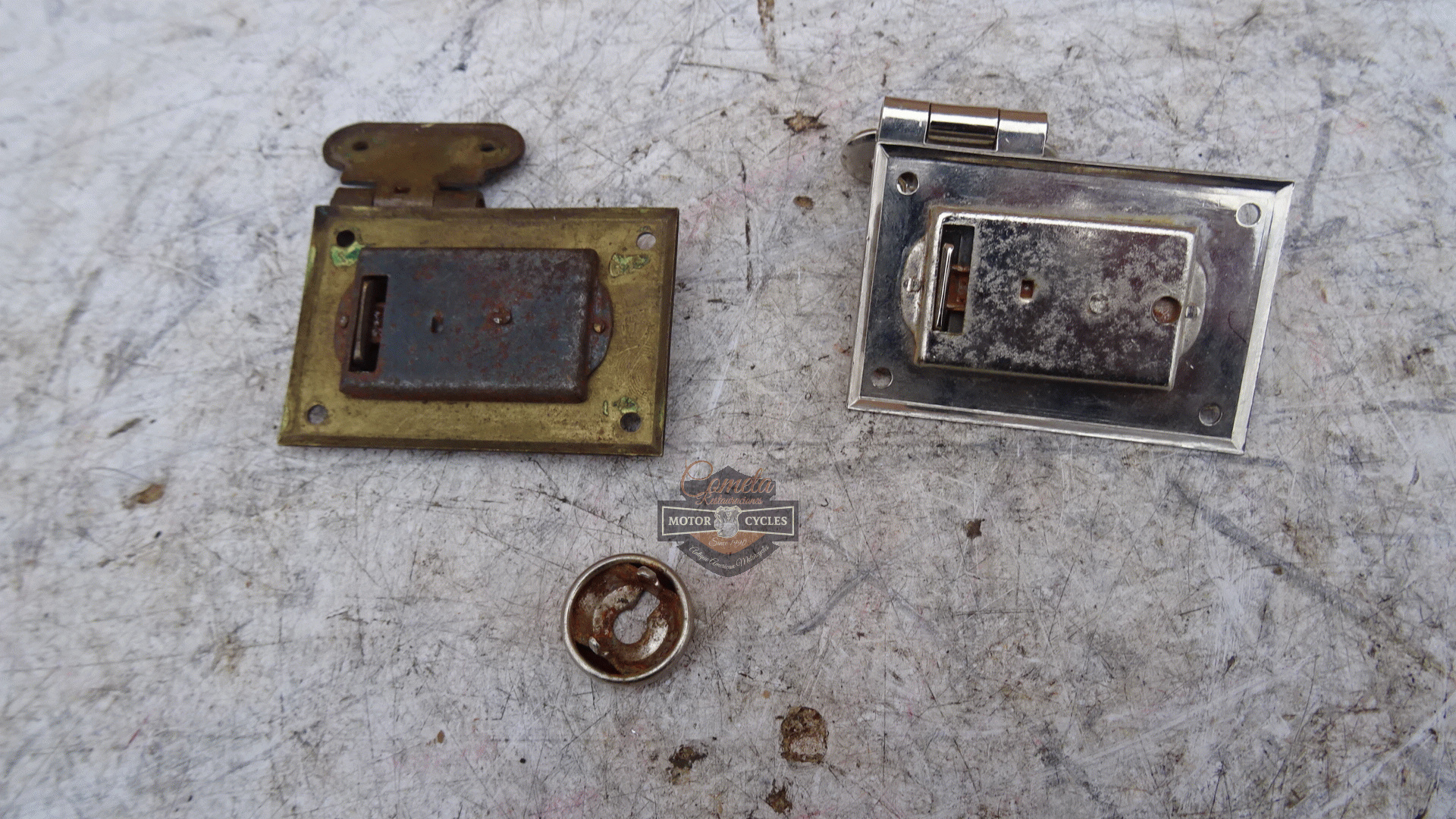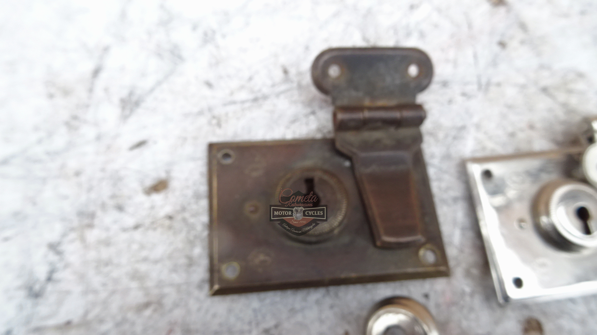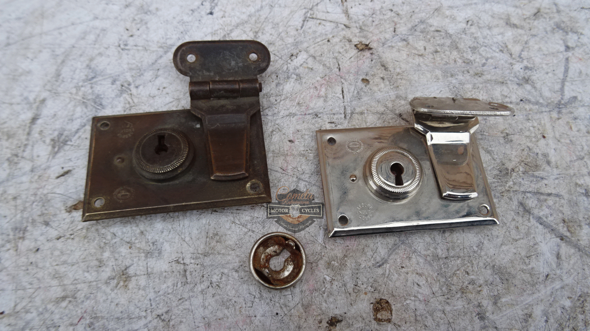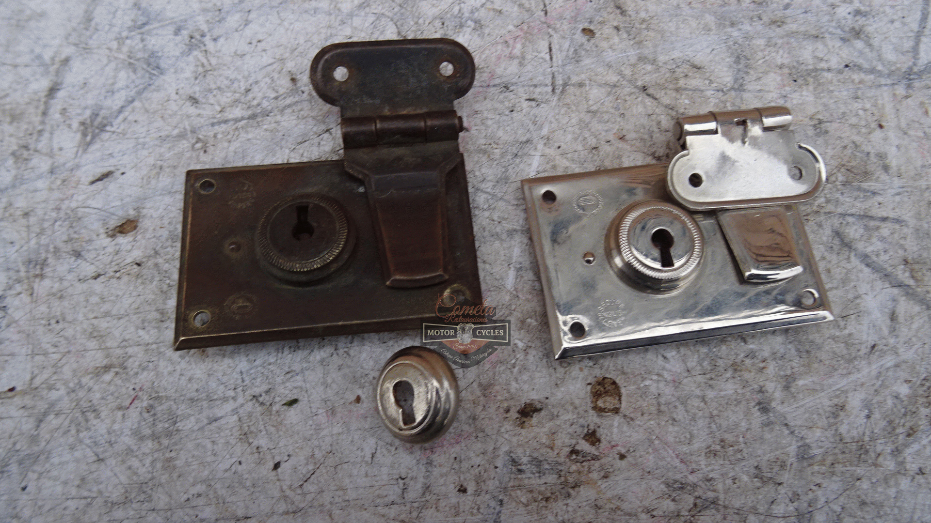Original CAPITOL brand locks for leather tool boxes. The keys are missing, but they are open and can be used for motorcycles from 1920 to 1929.