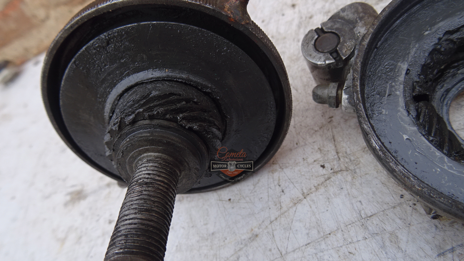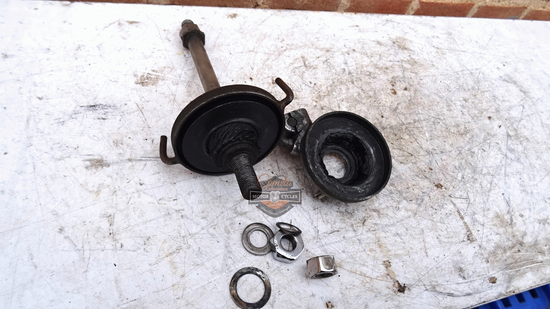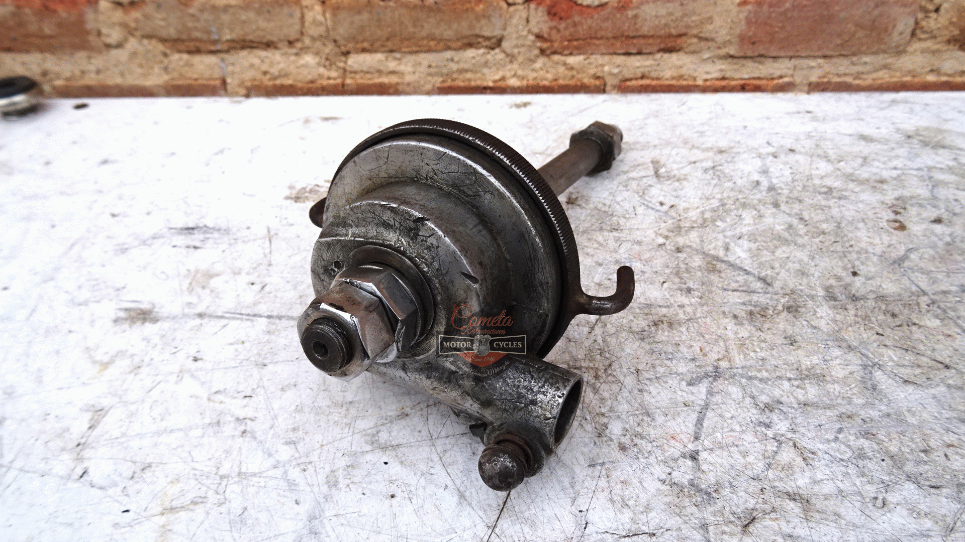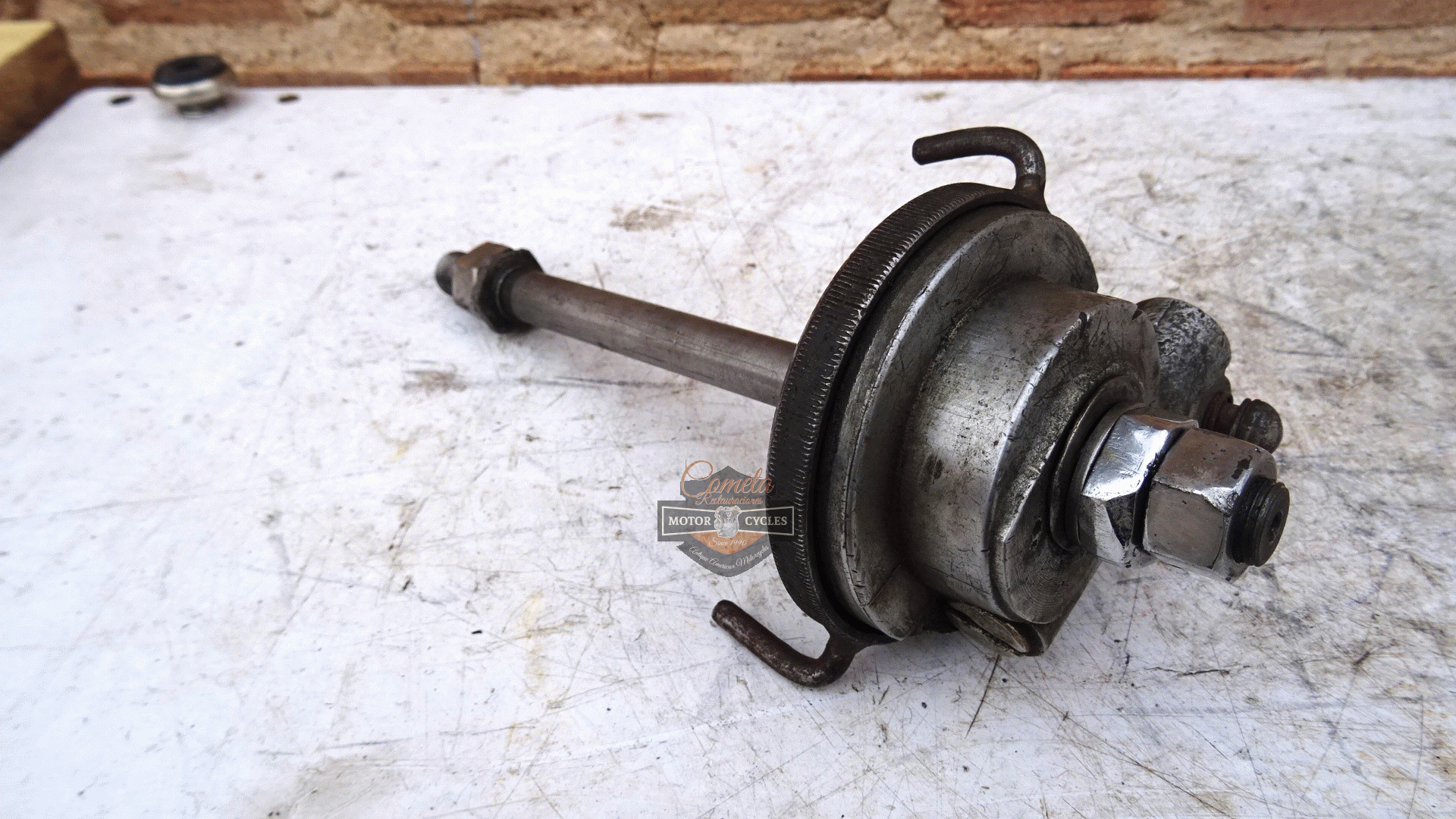 DKW NZ 500cc original speedometer drive with wheel axle. This transmission was adapted, possibly to install it on another motorcycle. The original lugs were cut off, but it is an easy repair to restore it to its original condition. Years: 1939 / 1940 / 1941