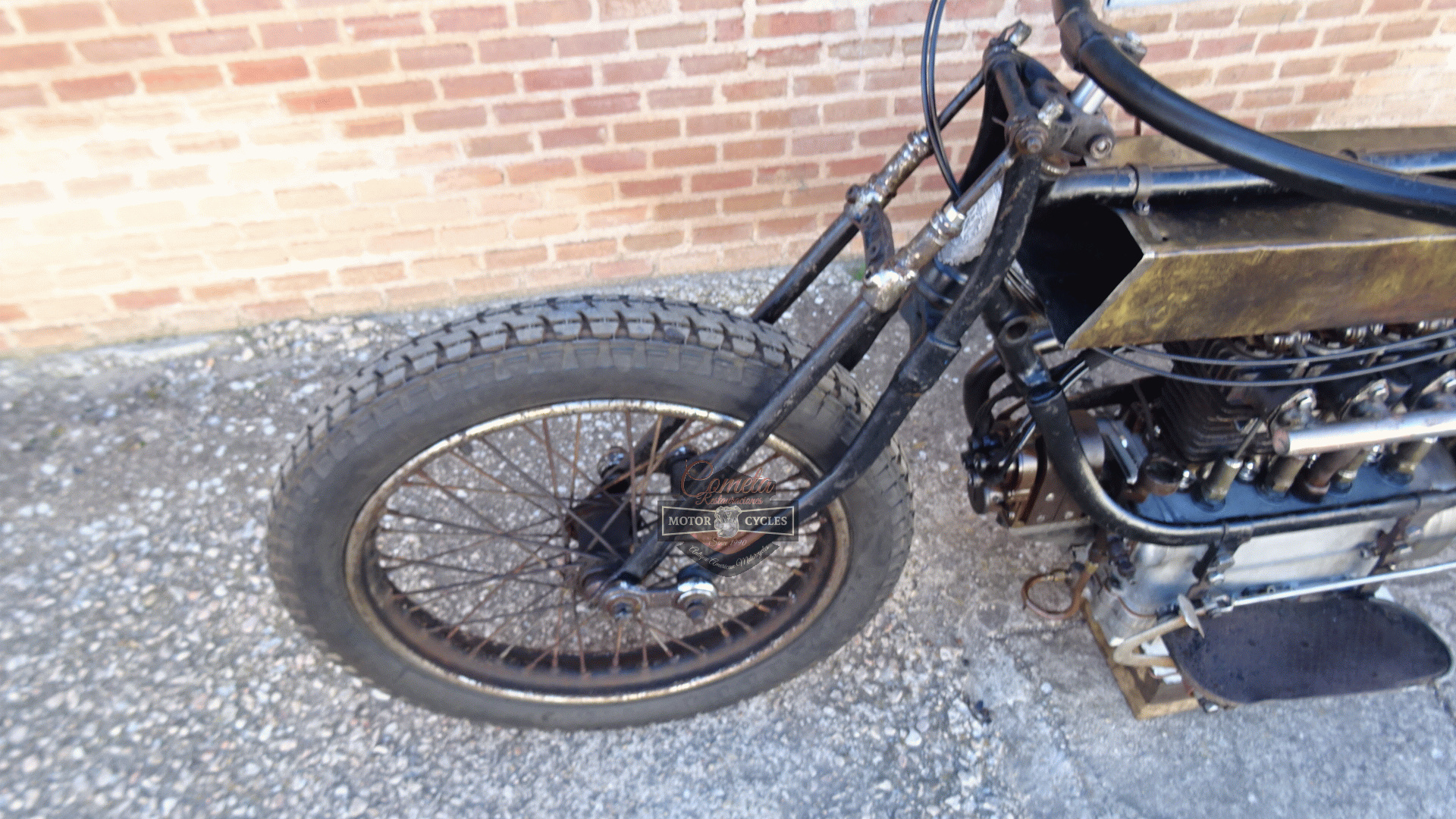 FN 4-cylinder model 700T 750cc is a restoration project. It is fairly complete; all the main parts are there, and it has a good base. The engine was rebuilt in the 1980s by a professional. We have some photos of when they were rebuilding the engine in the workshop. The engine crankcase had to be remade because the original one was broken and impossible to weld. Two connecting rods that were damaged were also replaced, as well as bearings, valve segments, valve guides, engine gaskets, etc. We also have all the original parts that were replaced during the rebuild. The engine starts and sounds good, but some things still need to be adjusted, such as the starter kit, which does not engage properly, and a few other things. The clutch also needs to be checked thoroughly. I assume that the brake pads are worn. The gearbox looks fine and all the gears engage properly. The drive shaft also engages properly. The rest of the gas tank that is on it does not correspond to this year; it is older. The fork also needs work; it looks bent with respect to the frame. We can accept some motorcycles as part payment as long as they are 500 OHV or OHC, racer type, or we can also exchange for some American motorcycles from the 1910s, 1920s, or 1930s. We may also be interested in some American motorcycle projects from those years as part payment.