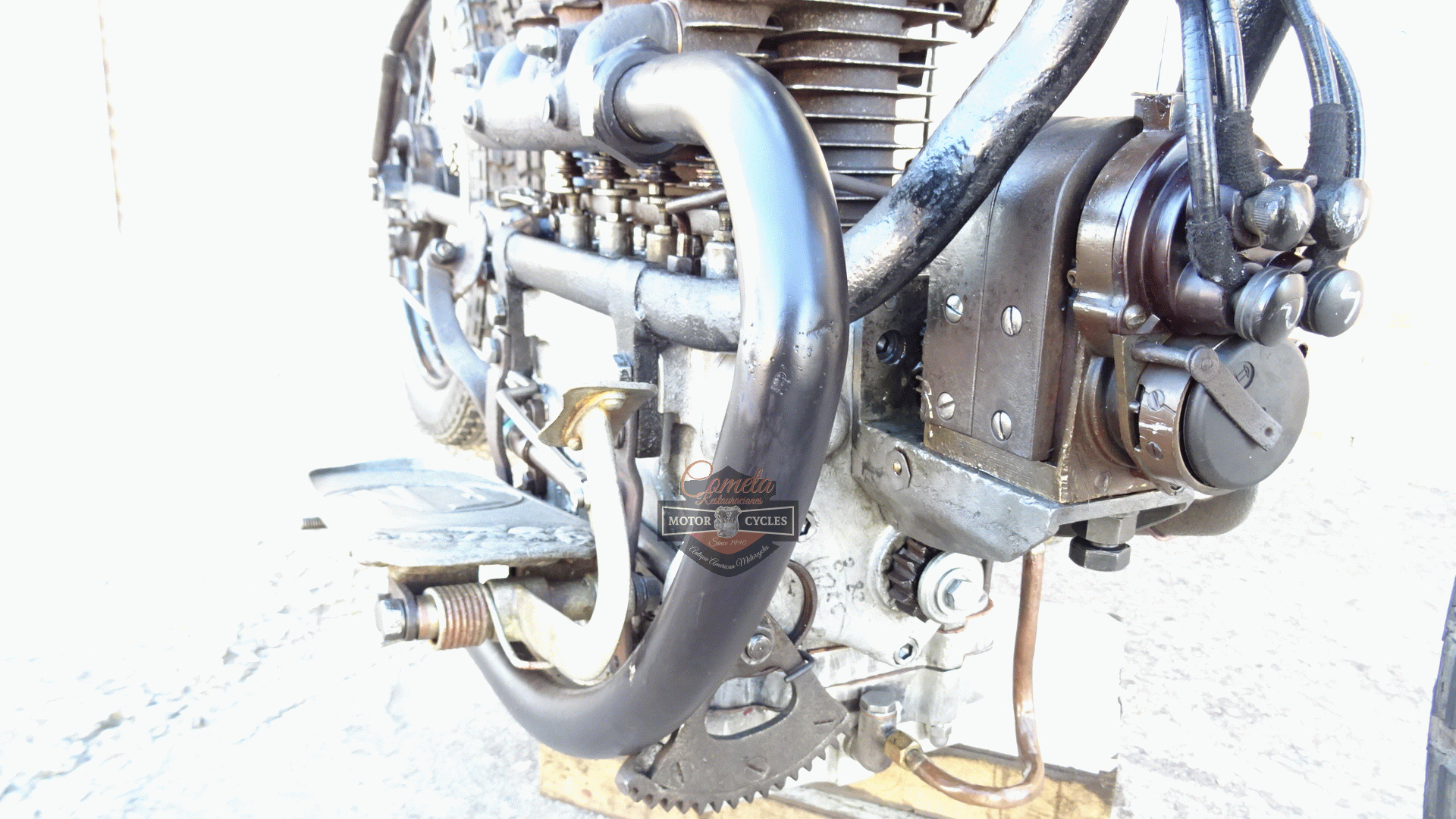FN 4 cilindros modelo 700T 750cc es un proyecto de restauración , esta bastante completa todo lo principal está , hay una buen base , el motor fue reconstruido en los años 80 por un profesional tenemos algunas fotos de cuando estaban reconstruyendo el motor en el taller , el carter de el motor hubo que fabricarlo nuebo pues el original estaba roto y fue imposible de soldarlo , tambien se cambiaron dos bielas que estaban mal aparte de rodamientos segmentos valvulas guias de valvulas etc juntas de motor , todas las partes originales que se cambiaro durante la reconstrucion tambien las tenemos , el motor arranca y suena bien , pero aun hay que ajustar algunas cosas como el kit starter que no engrana bien y alguna cos mas , tambien queda de revisar bien el embrague supongo que el sitema de ferodos estara gastado , la la caja de cambios se ve bien y todas las velocidades engranan bien , el cardan tambien engrana bien , el resto de deposito de gasolina que tiene puesto , no corresponde a este año es mas antiguo , la horquilla tambien hay que trabajar en ella se ve torcida con respecto a bastidor , podemos aceptar alguna motocicleta como parte de pago siempre que sea 500 OHV o OHC , tipo racer o tambien podemos cambiar por alguna motocicleta americana años 1910 1920 1930 , tambien nos puede interesar algun proyecto de motocicleta americana , de estos años como parte de pago
