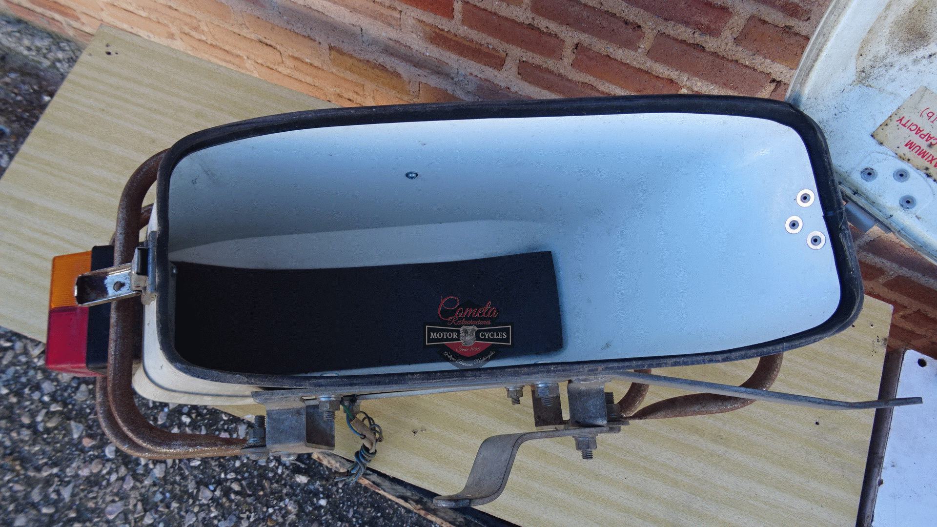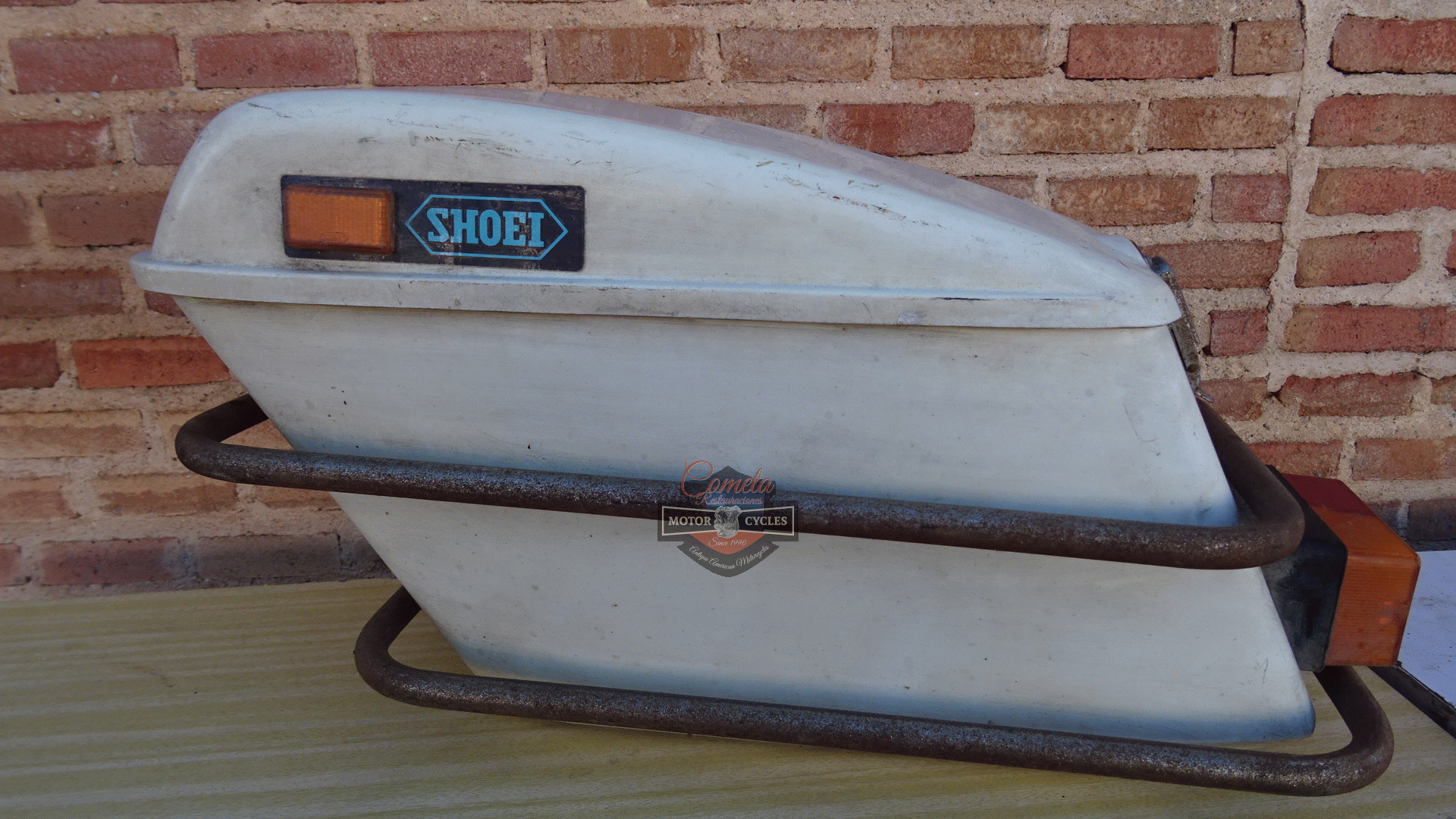 MALETA FIBRA PORTAEQUIPAJES SHOEI CON SOPORTE Y PILOTO TRASERO MOTOCICLETAS AÑOS 1970 A 1980