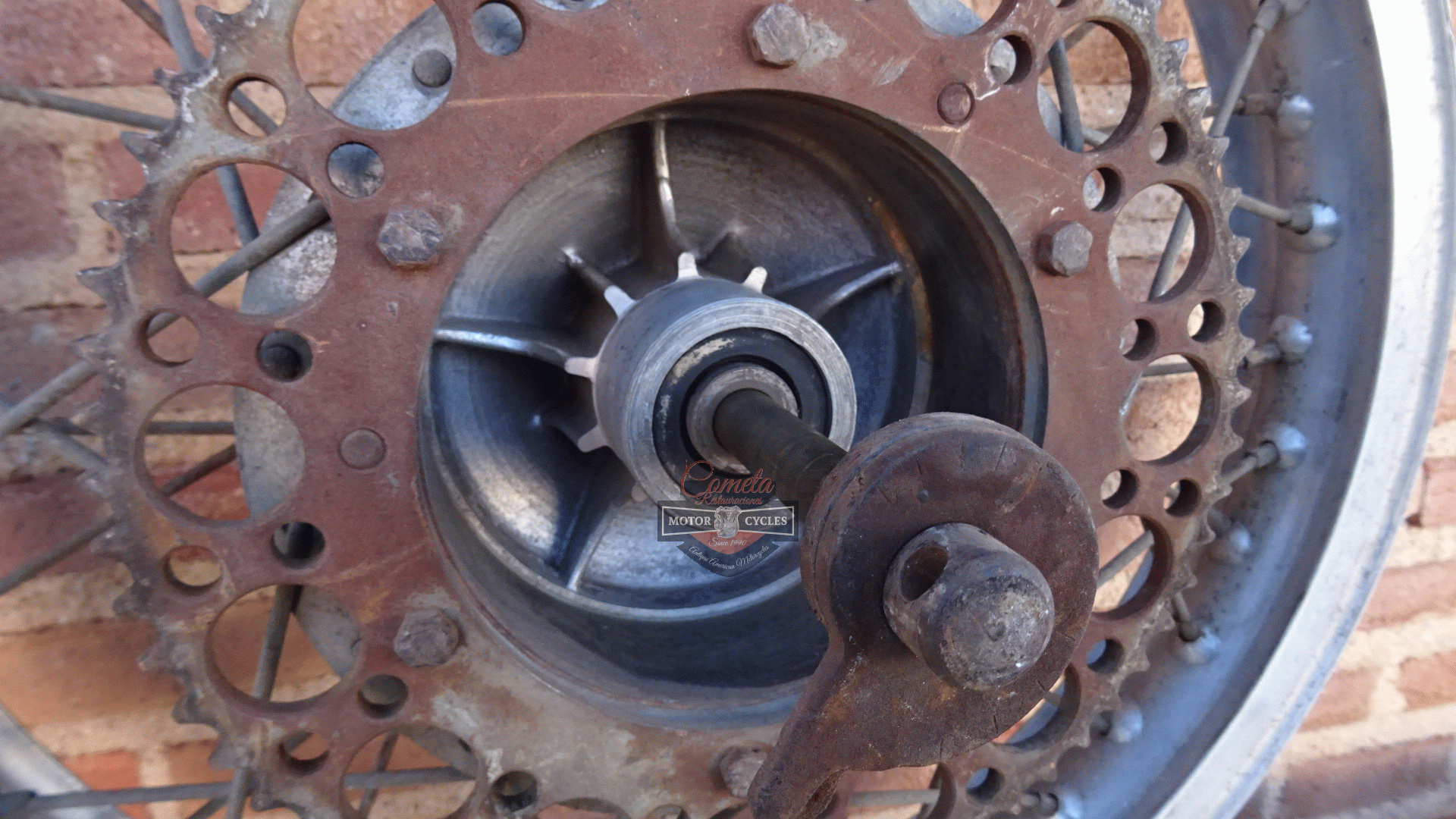 Rear wheel/hub with Akron aluminium rim in good condition for BULTACO ALPINA / PURSANG / MATADOR / SHERPA / OTHERS FROM 1970 TO 1979