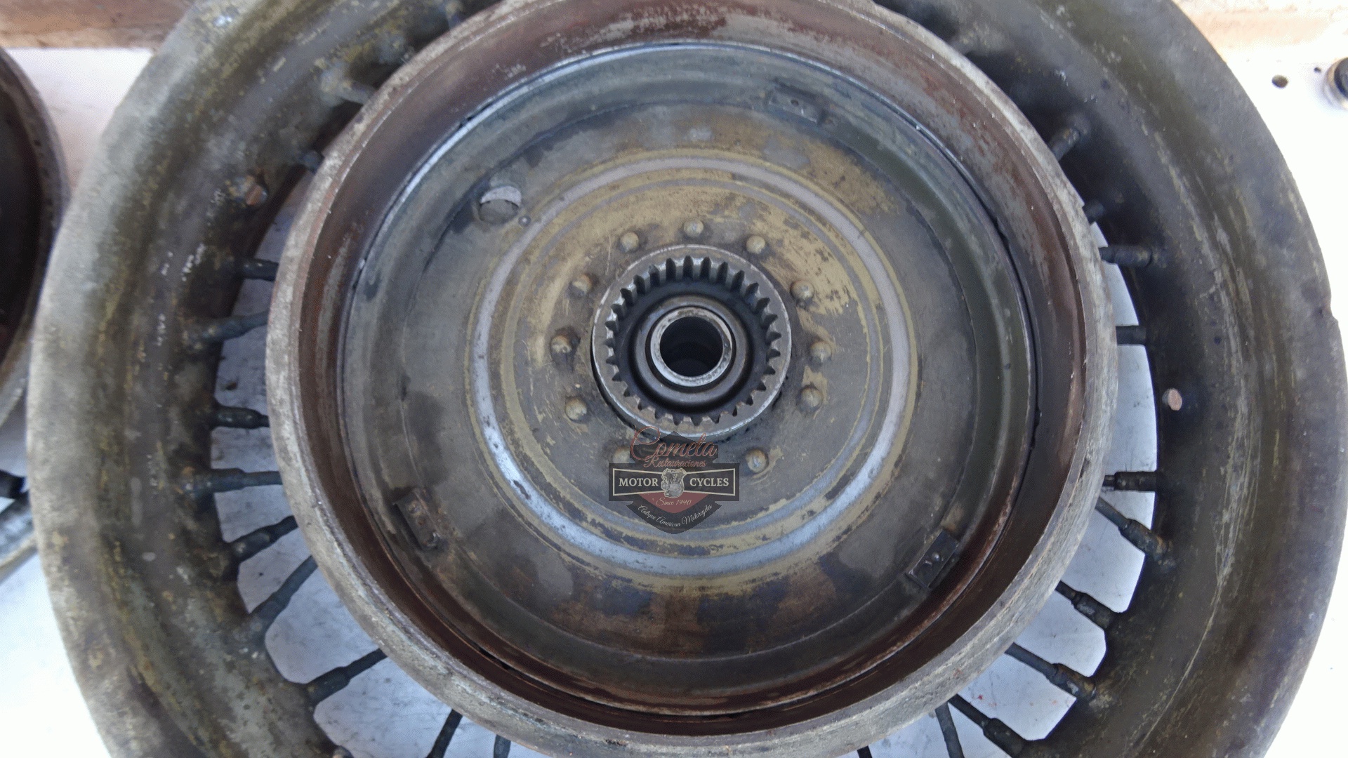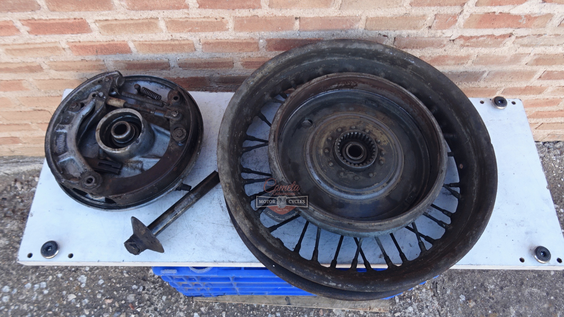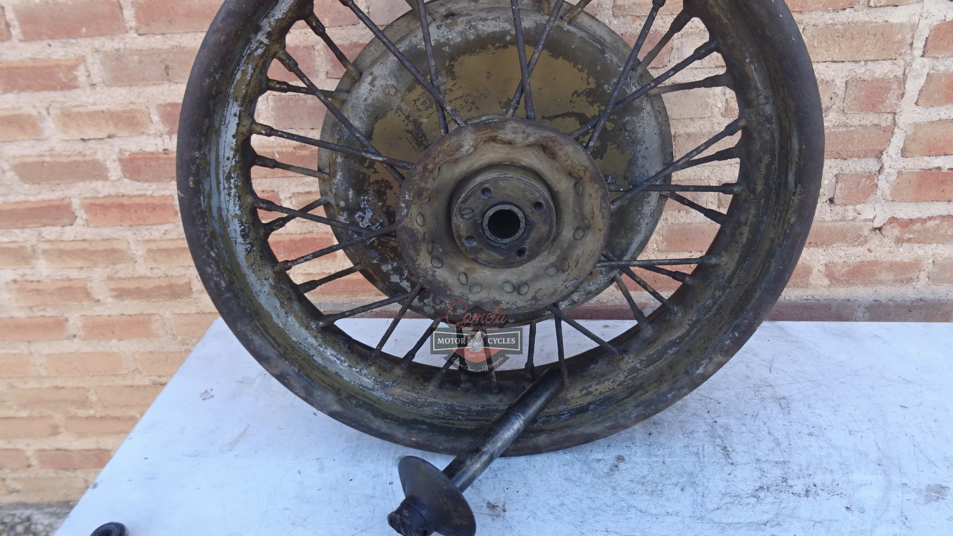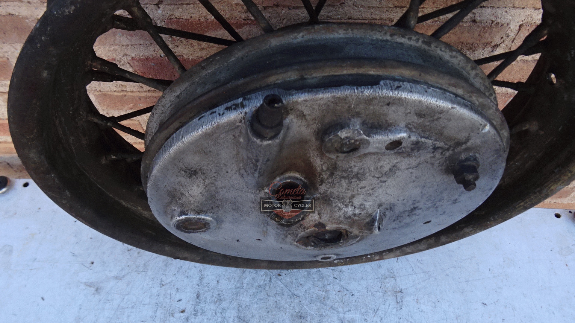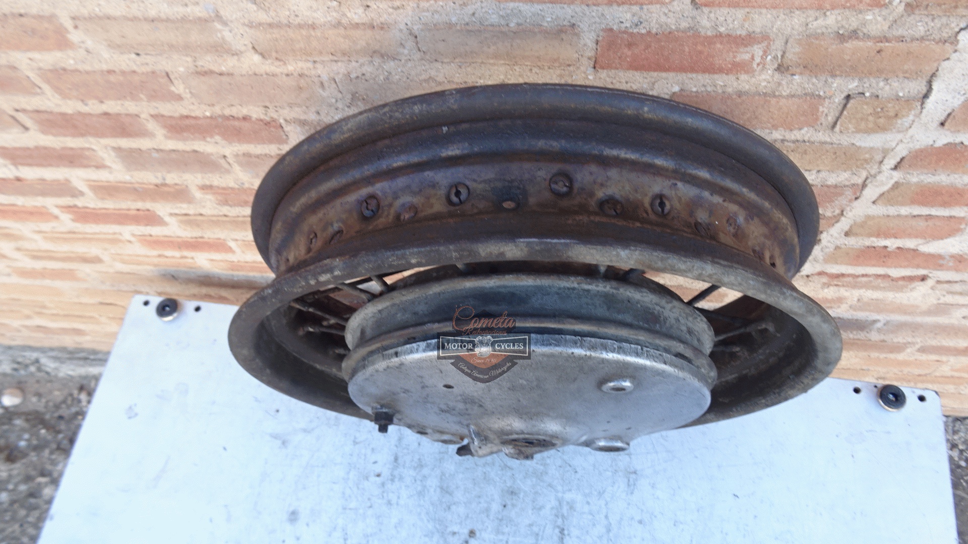 rueda / buje delantero completo con plato portazapatas para BMW R75 GUERRA años 1941 a 1944 Front wheel/hub complete with brake shoe plate for BMW R75 WEHRMACHT, years 1941 to 1944
