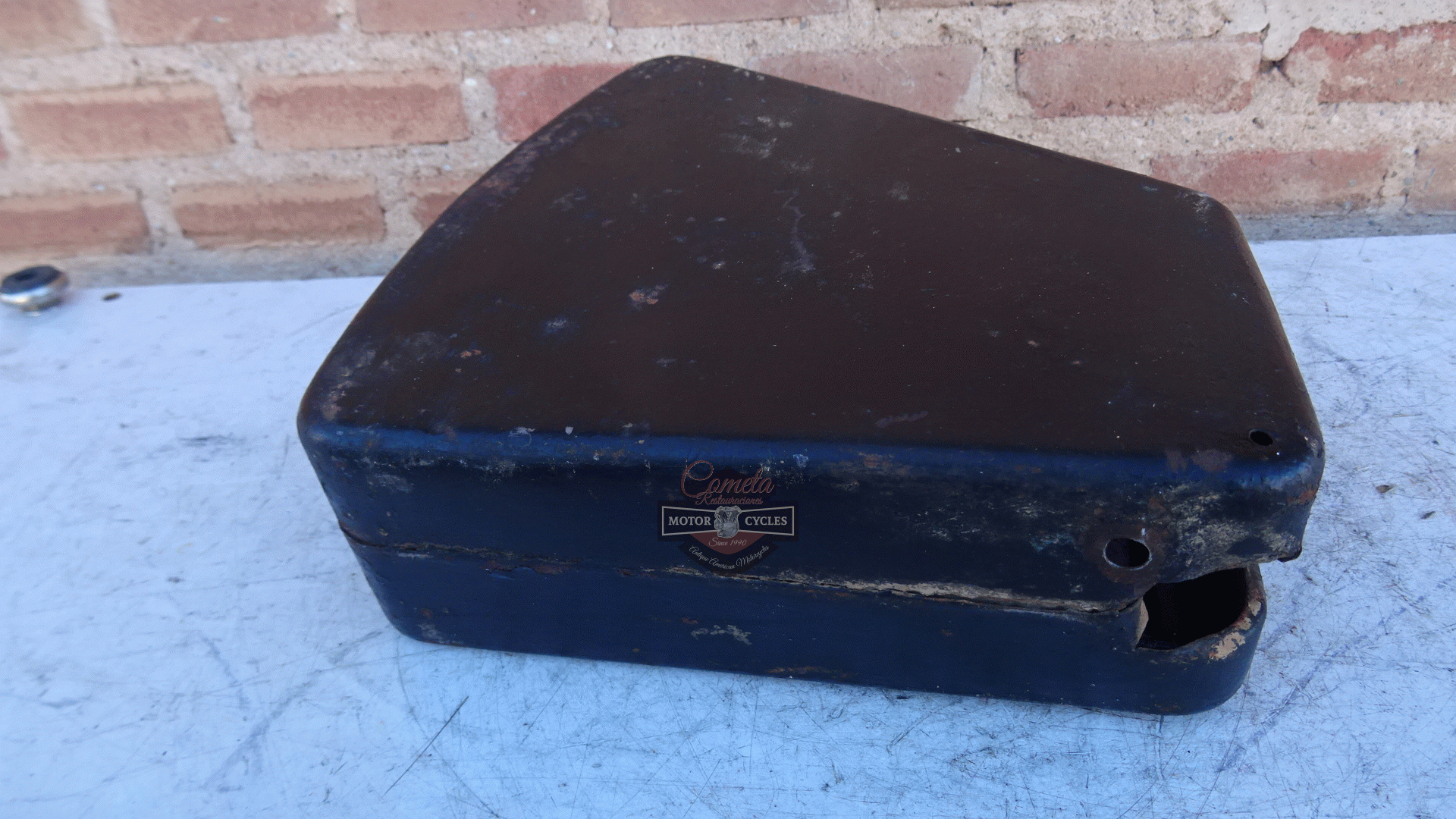 caja de herramientas original Norton 18 / 16h tiene que repararse uno de los lados por que la cortaron para adaptarla a un bastidor con suspension plunger , años 1931 a 1939