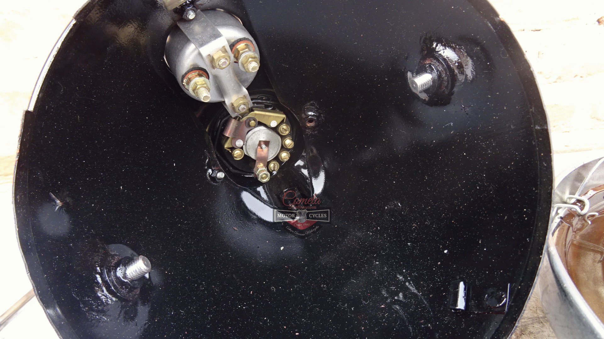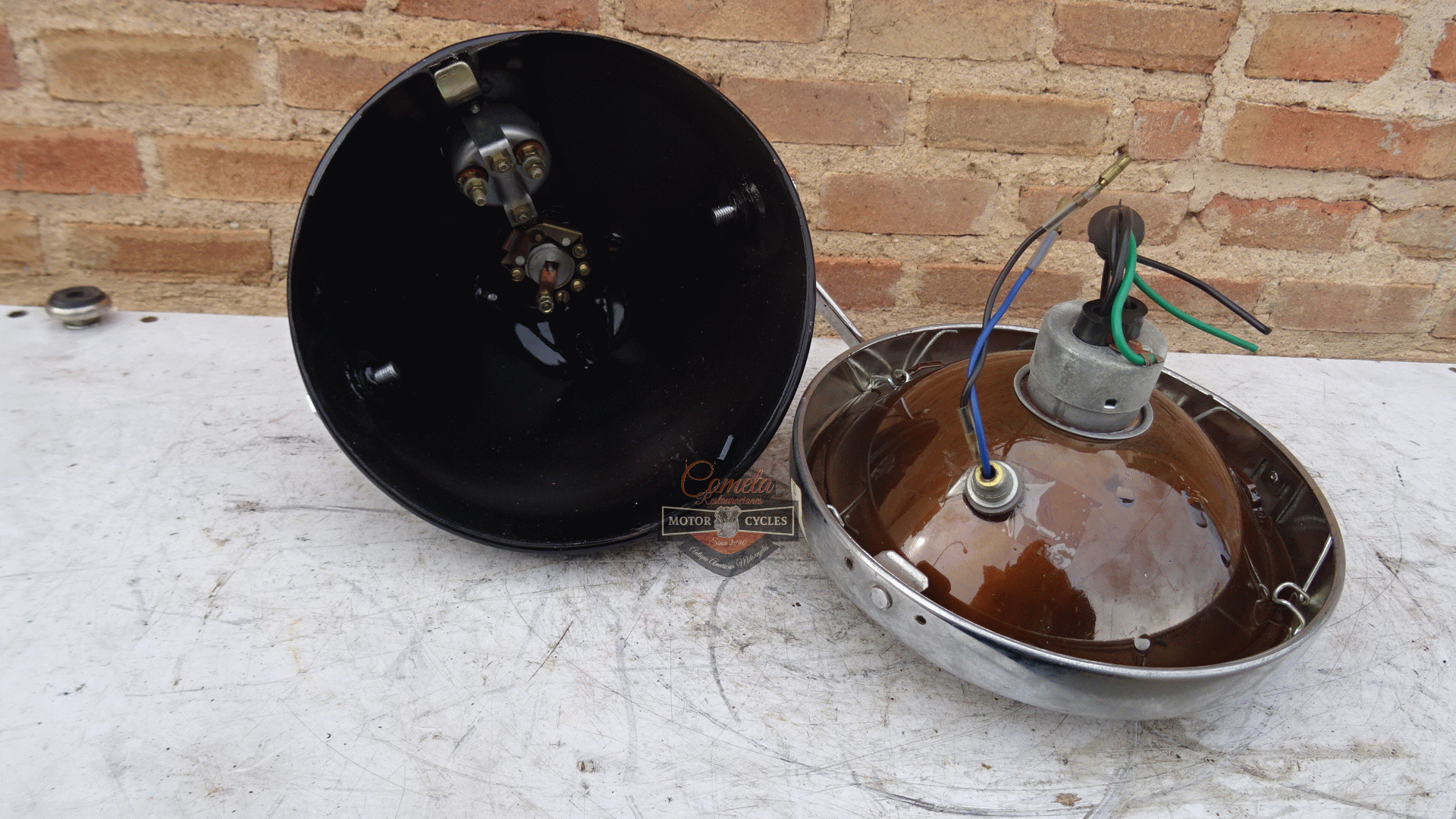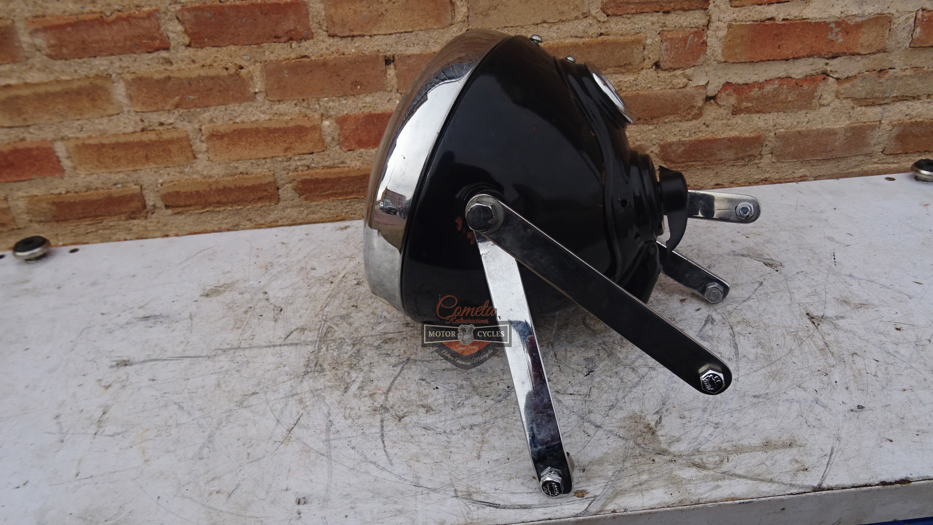 no se si es orginal o una replica muy antigua esta practicamente nuevo tiene los BRACKET para sujetar a la horquilla