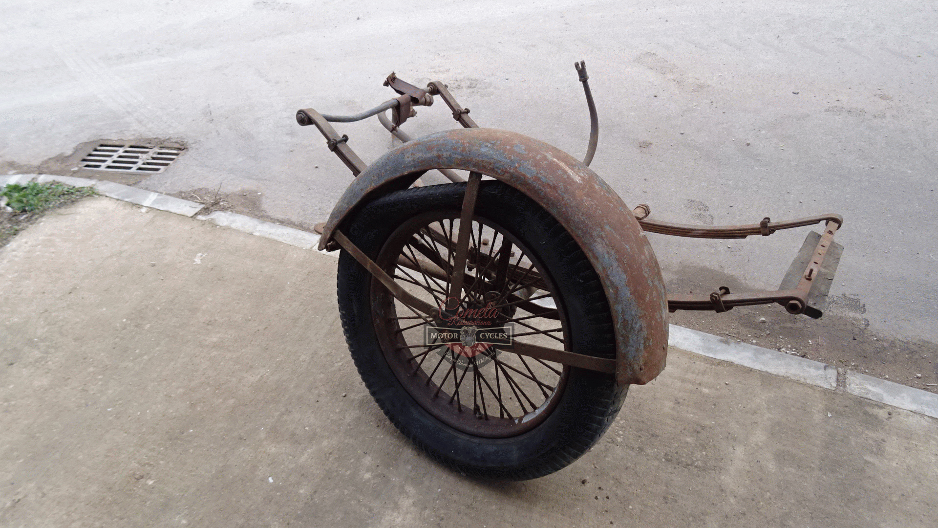 HARLEY DAVIDSON J JD bastidor / FRAME sidecar lado izquierdo con rueda y FENDERS MUDGUARD años 1925 / 1926 / 1927 / 1928 / 1929 HARLEY DAVIDSON J JD frame/chassis sidecar left side with wheel and mudguard years 1925/1926/1927/1928/1929