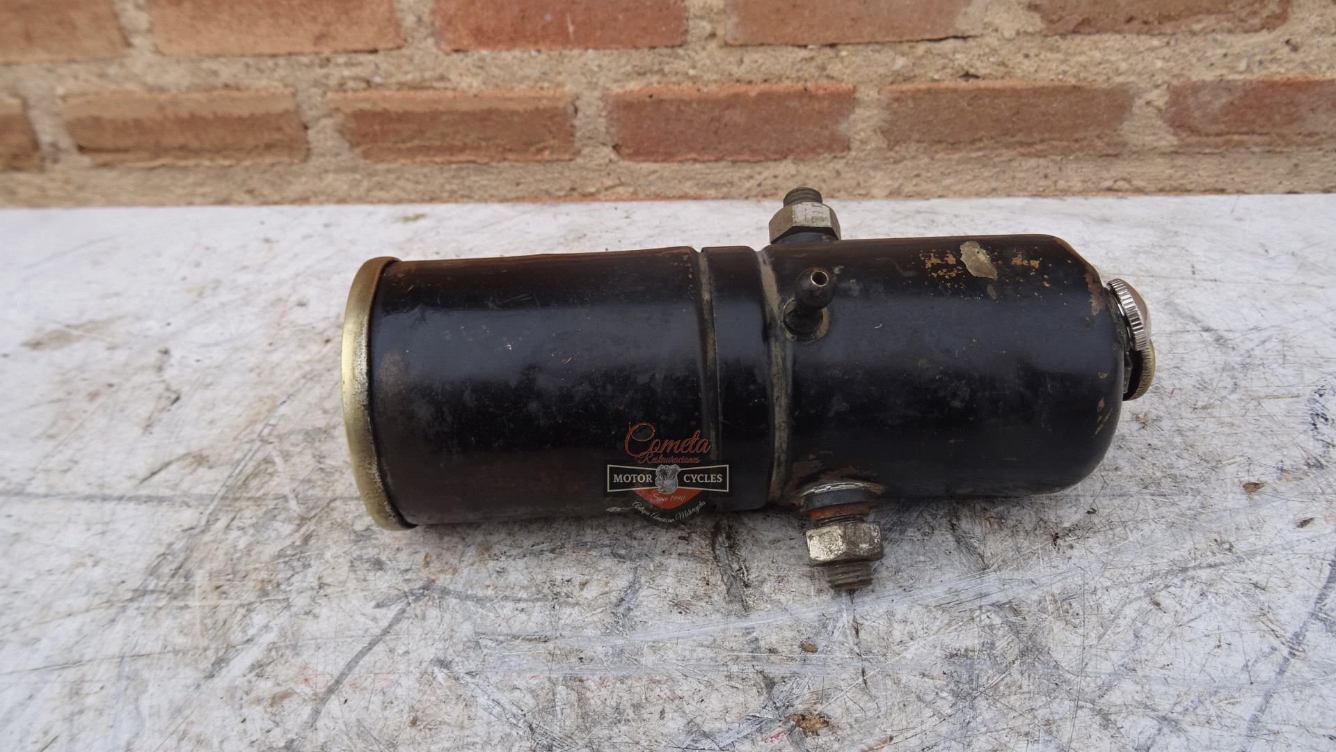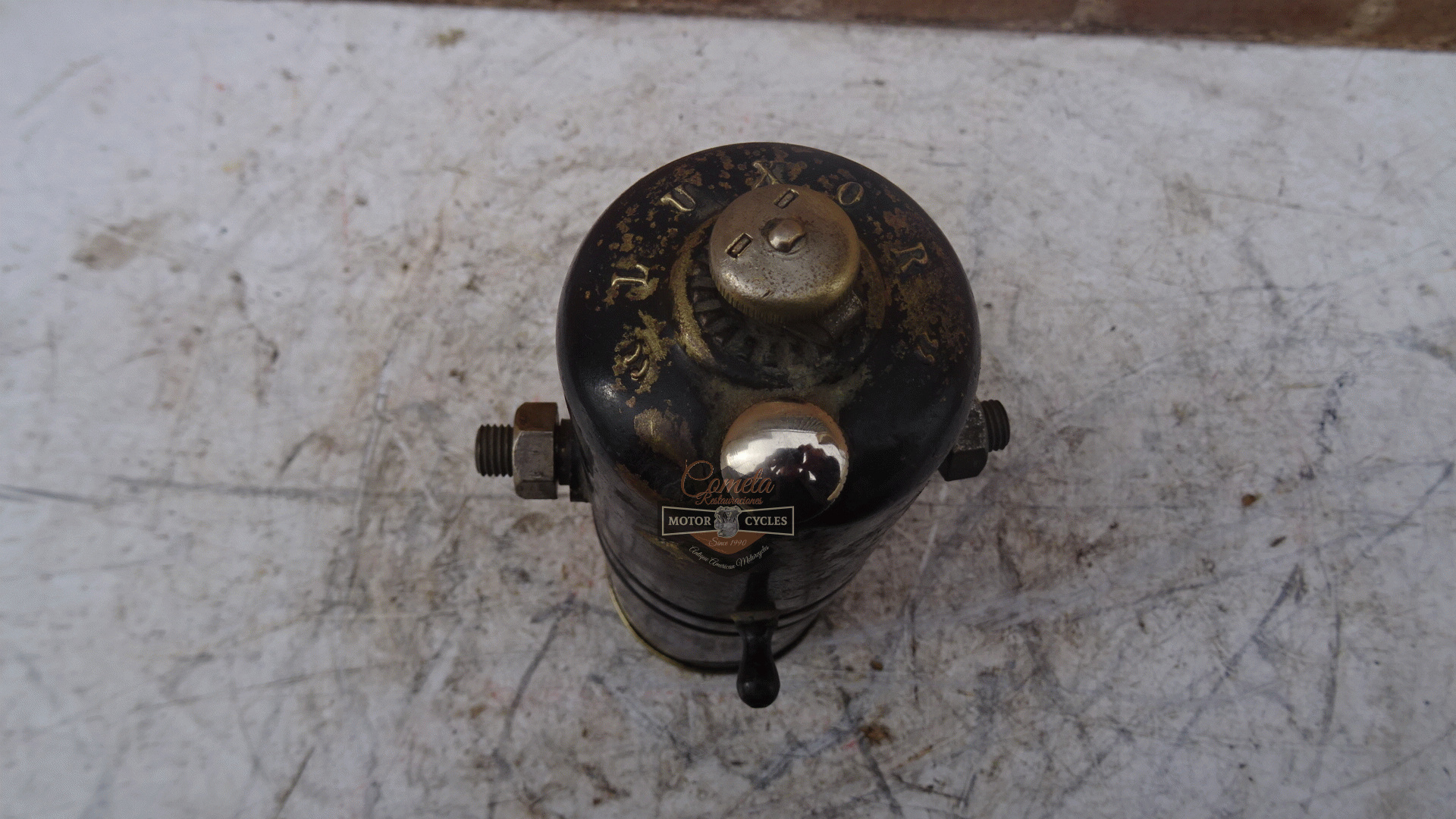 deposito de carburo de la marca LUXOR esta en muy buen estado para motocicletas años 1915 a 1928 LUXOR brand carburetor in very good condition for motorcycles from 1915 to 1928