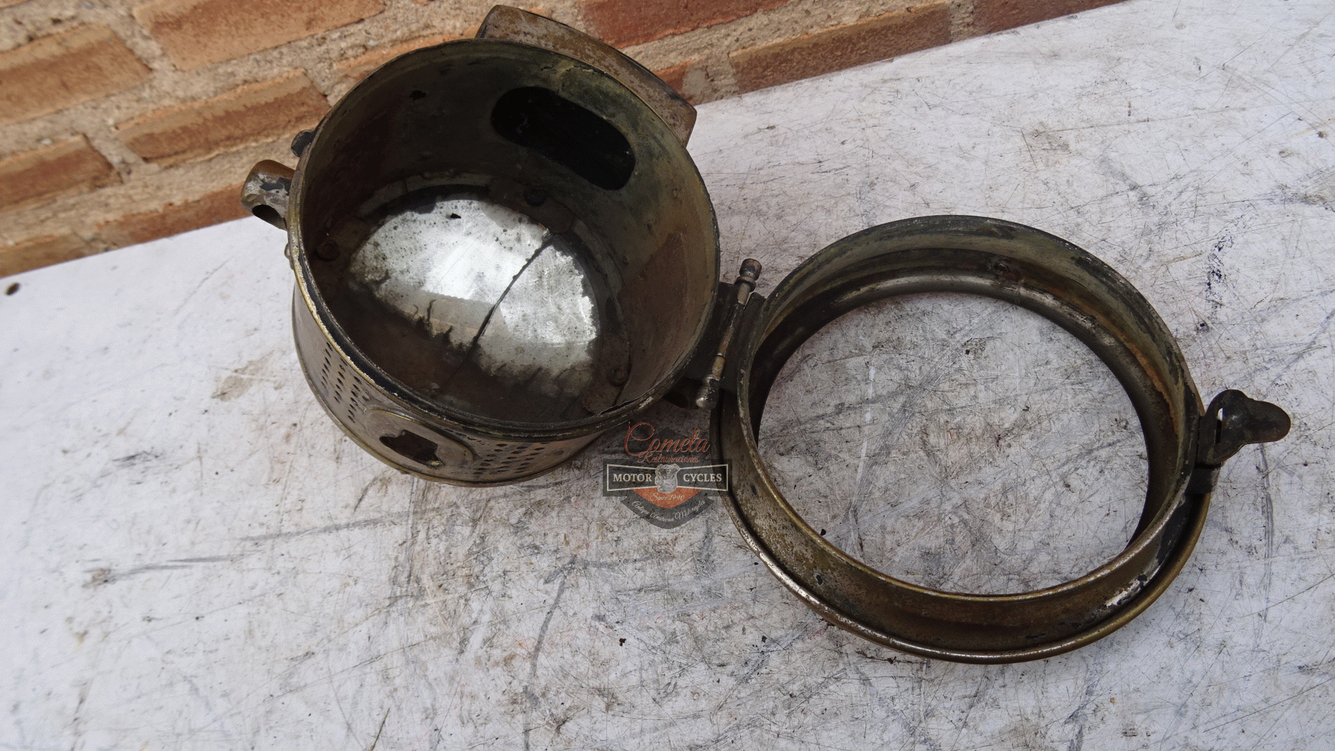 Carbide/acetylene headlamp / headlight , possibly American Old Sol INDIAN/HARLEY DAVIDSON/HENDERSON/EXCELSIOR, circa 1910 to 1915.