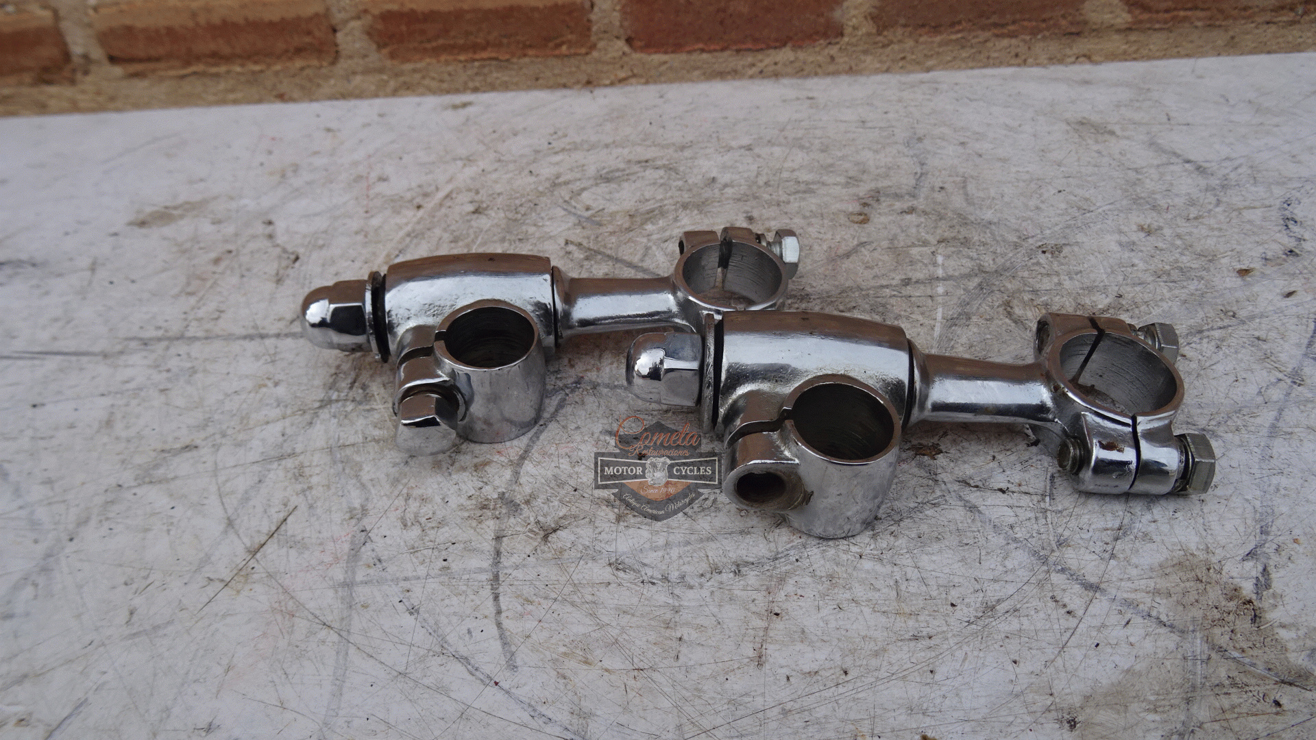 Original handlebar mounts for ROYAL ENFIELD J 500cc and 350cc G , for stamped steel girder fork, years 1937 / 1938 / 1939