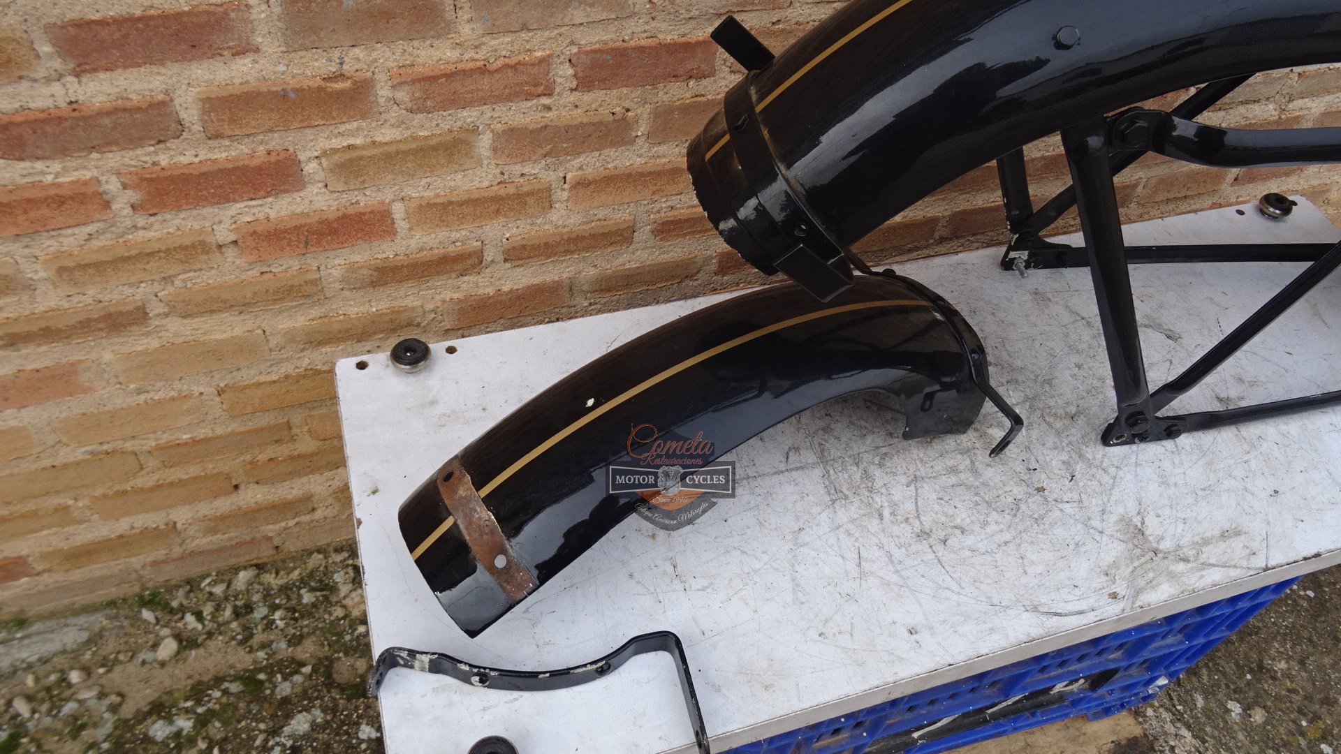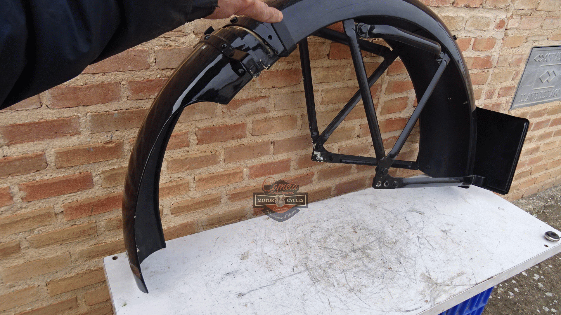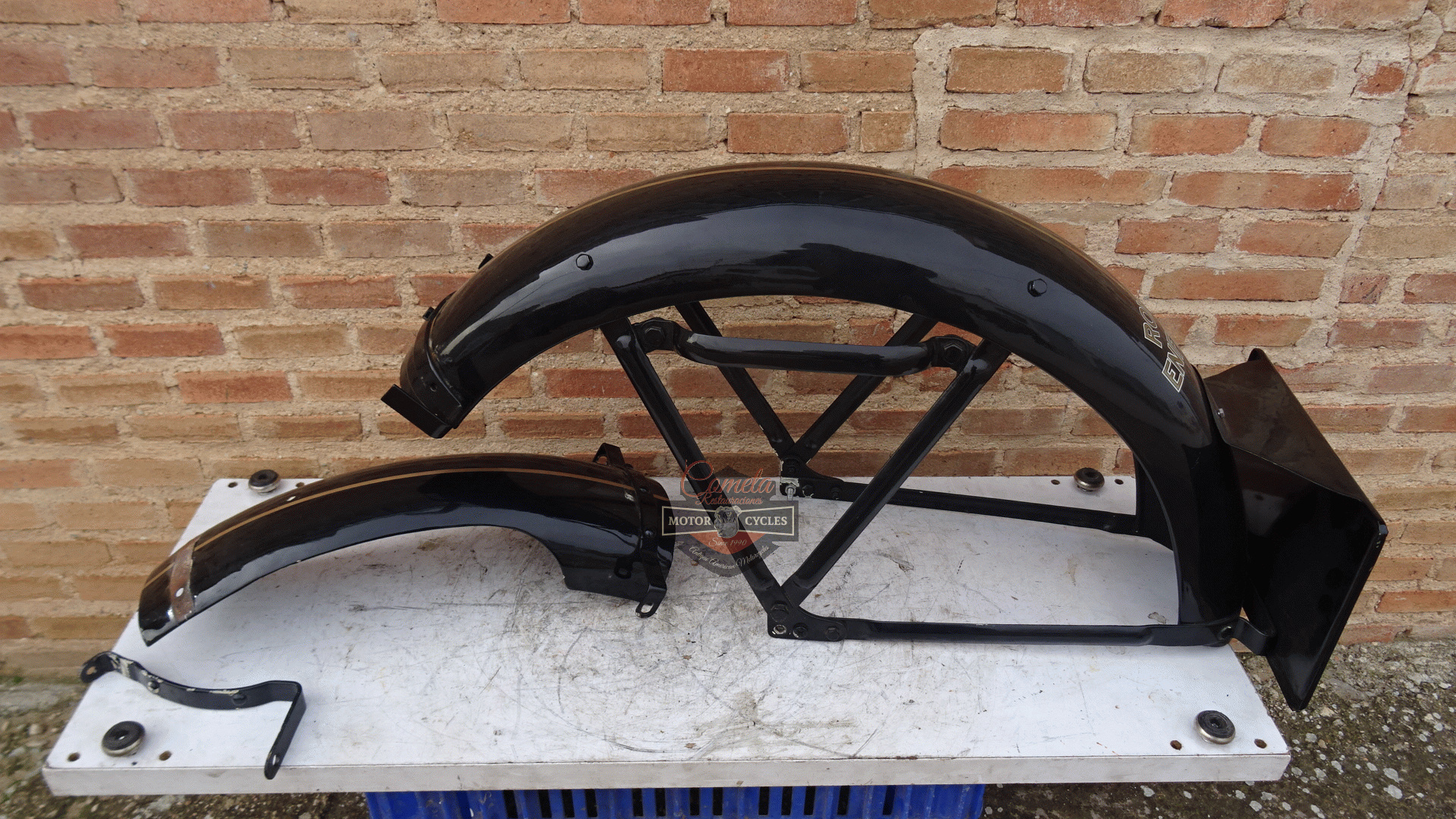 guardabarros trasero original con soporte de matricula ROYAL ENFIELD J500cc G350cc años 1935 a 1939 Original rear mudguard with number plate holder ROYAL ENFIELD J500cc G350cc years 1935 to 1939