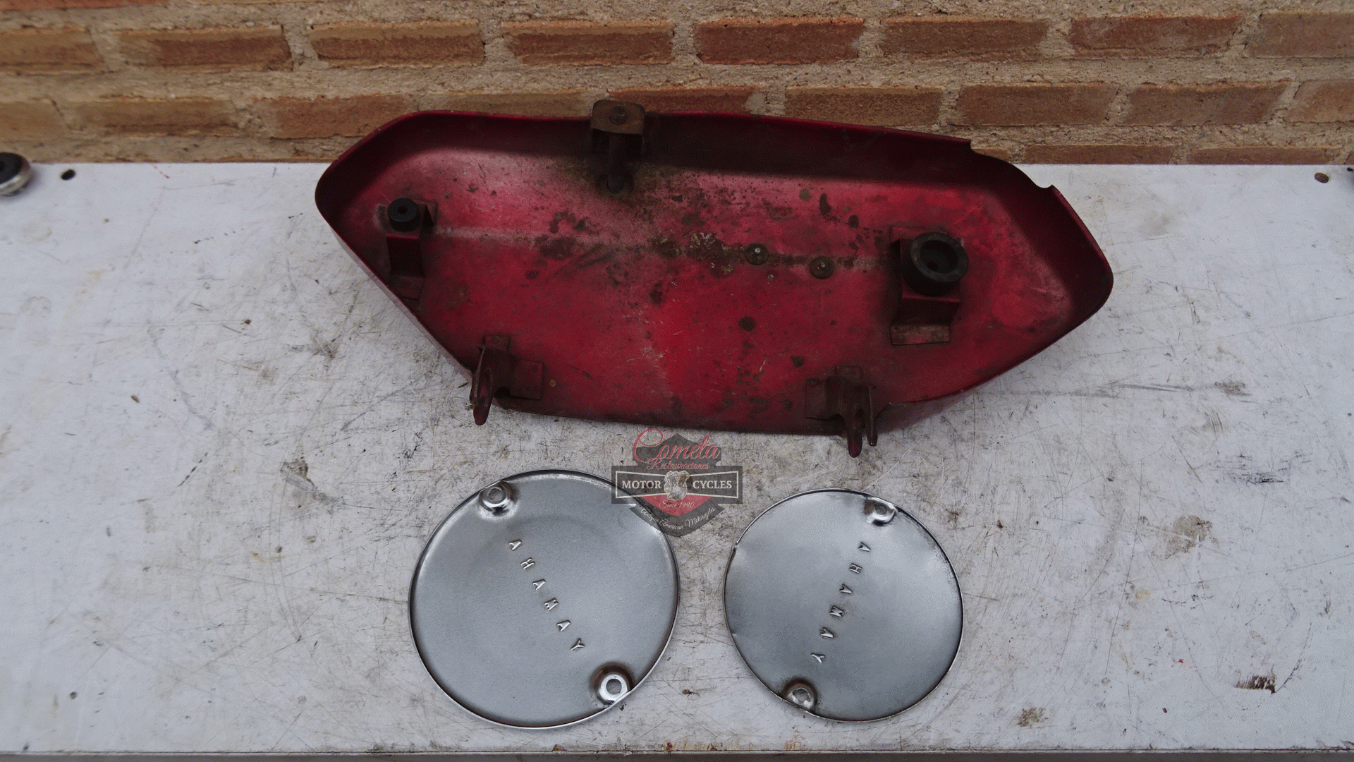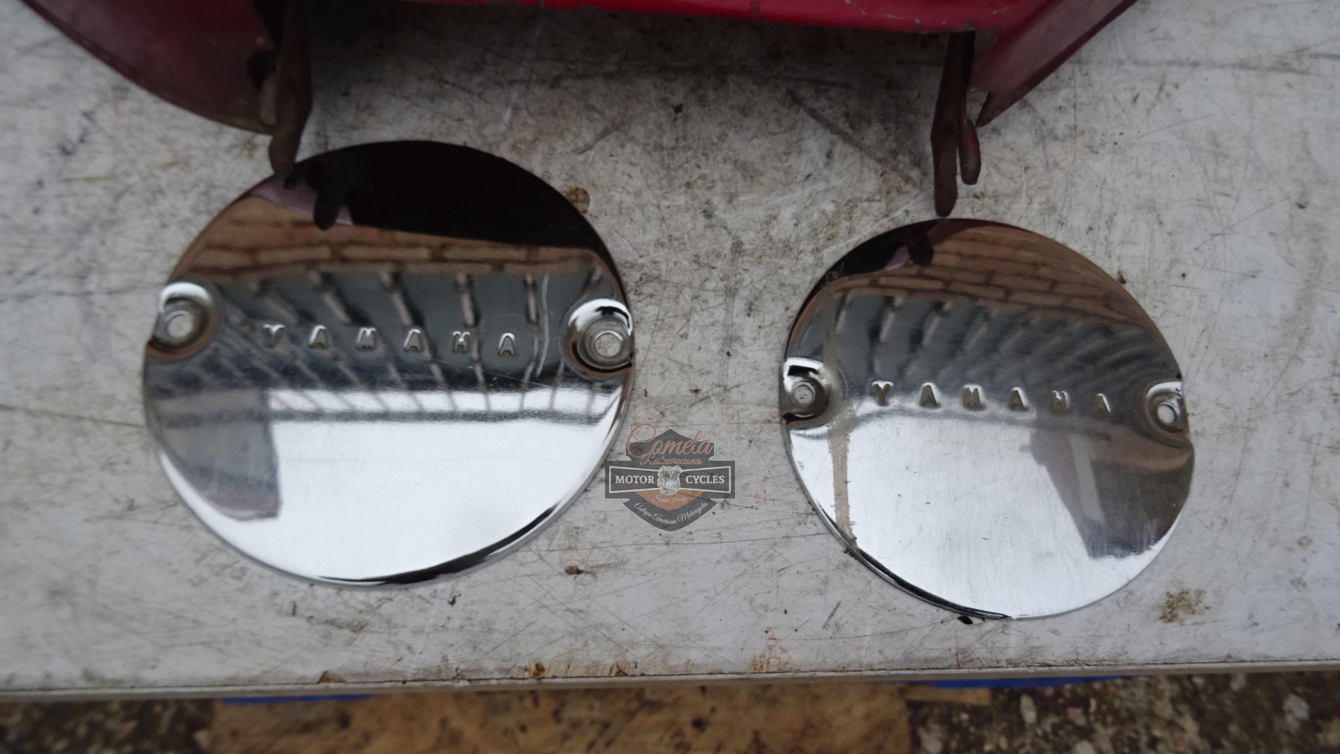 tapa lateral izquierda , y tapas laterales de motor cromadas originales YAMAHA YCS1 / CS1 180 BONANZA años 1967 / 1968 / 1969