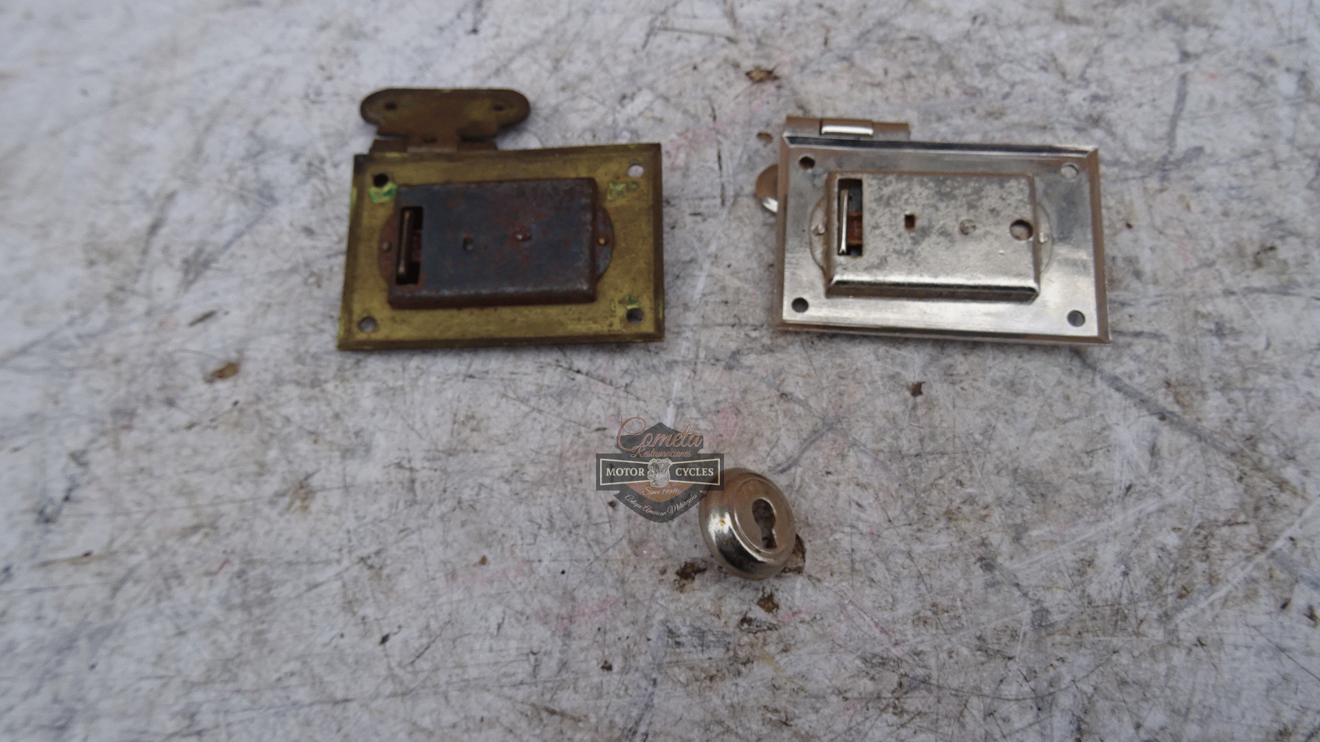 Original CAPITOL brand locks for leather tool boxes. The keys are missing, but they are open and can be used for motorcycles from 1920 to 1929.