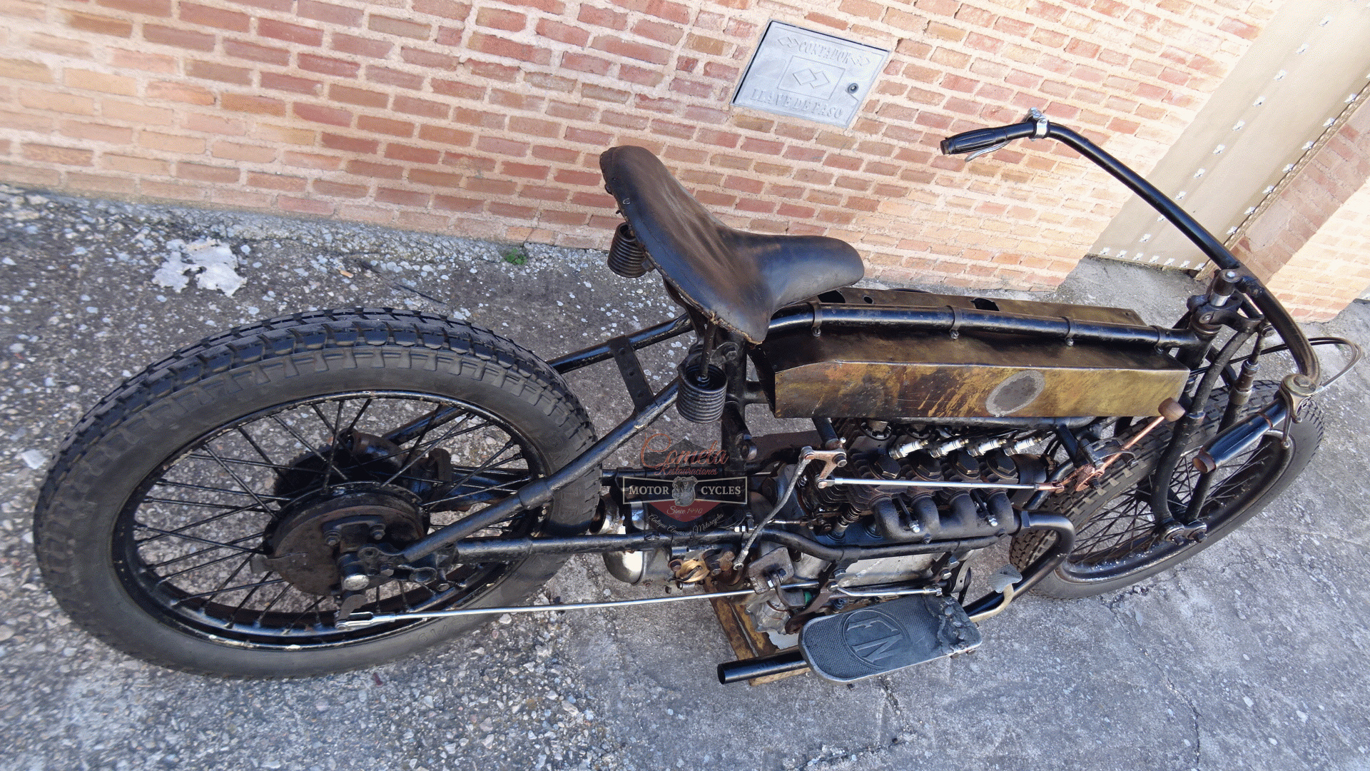 FN 4-cylinder model 700T 750cc is a restoration project. It is fairly complete; all the main parts are there, and it has a good base. The engine was rebuilt in the 1980s by a professional. We have some photos of when they were rebuilding the engine in the workshop. The engine crankcase had to be remade because the original one was broken and impossible to weld. Two connecting rods that were damaged were also replaced, as well as bearings, valve segments, valve guides, engine gaskets, etc. We also have all the original parts that were replaced during the rebuild. The engine starts and sounds good, but some things still need to be adjusted, such as the starter kit, which does not engage properly, and a few other things. The clutch also needs to be checked thoroughly. I assume that the brake pads are worn. The gearbox looks fine and all the gears engage properly. The drive shaft also engages properly. The rest of the gas tank that is on it does not correspond to this year; it is older. The fork also needs work; it looks bent with respect to the frame. We can accept some motorcycles as part payment as long as they are 500 OHV or OHC, racer type, or we can also exchange for some American motorcycles from the 1910s, 1920s, or 1930s. We may also be interested in some American motorcycle projects from those years as part payment.