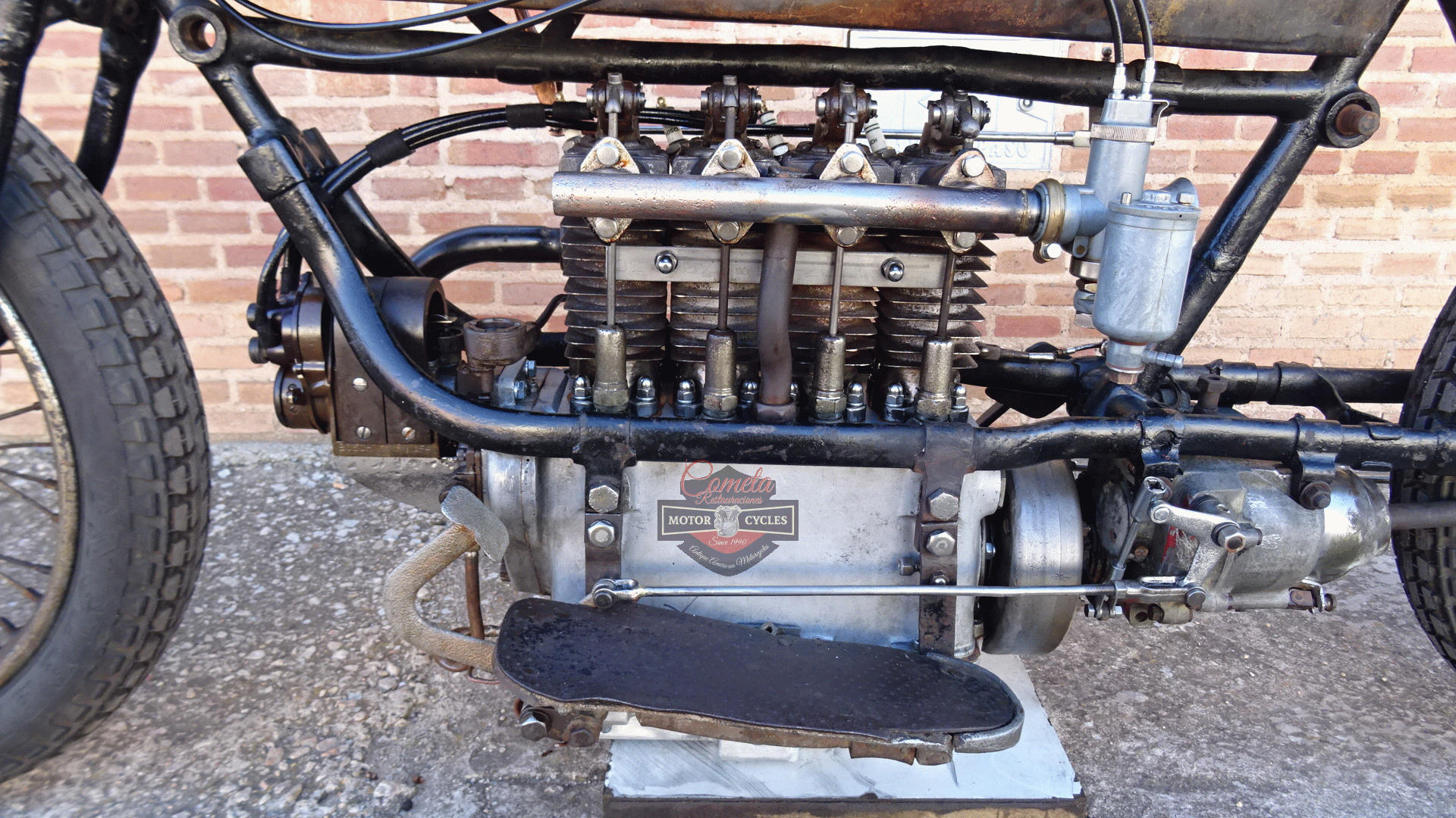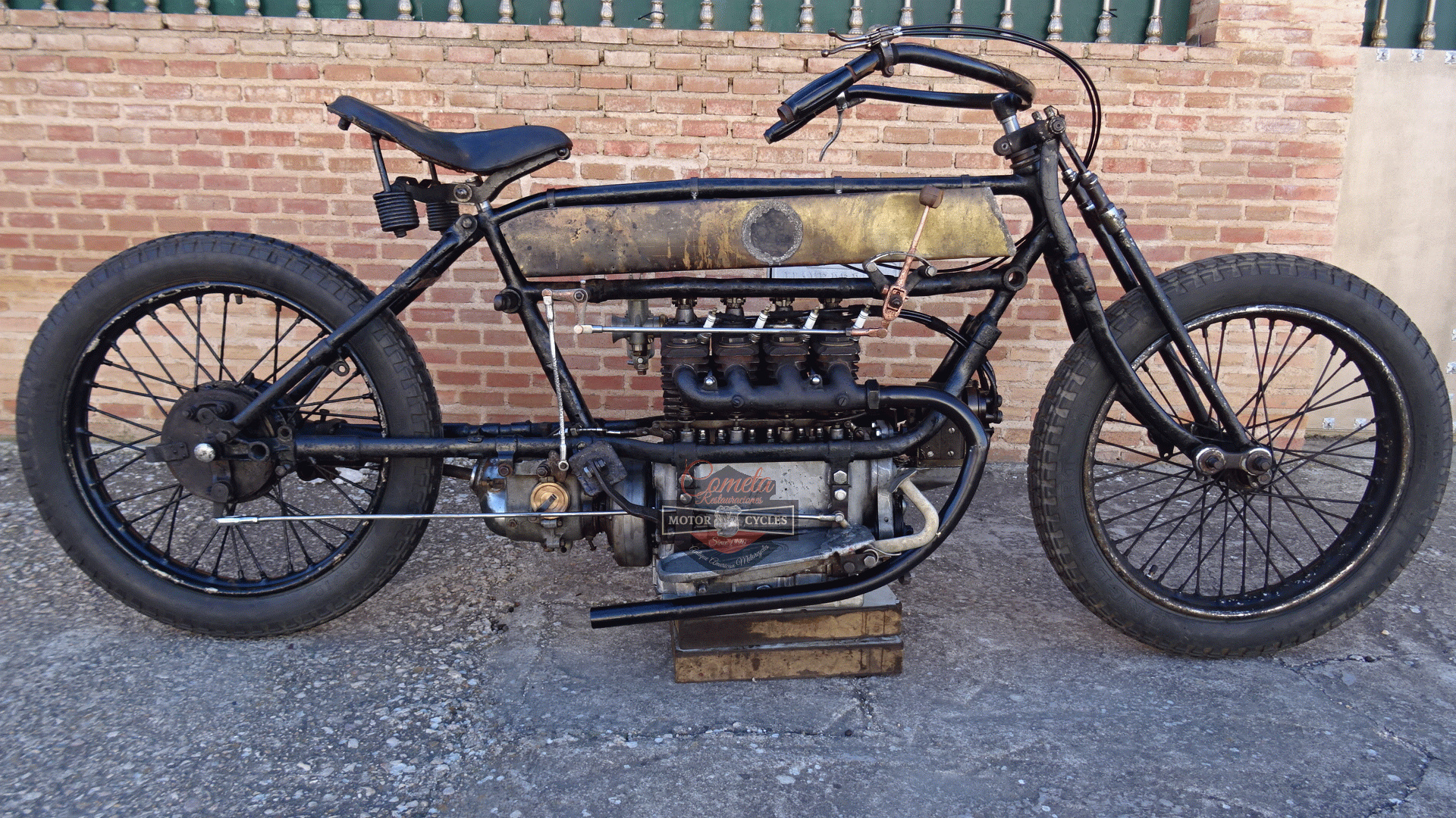 FN 4-cylinder model 700T 750cc is a restoration project. It is fairly complete; all the main parts are there, and it has a good base. The engine was rebuilt in the 1980s by a professional. We have some photos of when they were rebuilding the engine in the workshop. The engine crankcase had to be remade because the original one was broken and impossible to weld. Two connecting rods that were damaged were also replaced, as well as bearings, valve segments, valve guides, engine gaskets, etc. We also have all the original parts that were replaced during the rebuild. The engine starts and sounds good, but some things still need to be adjusted, such as the starter kit, which does not engage properly, and a few other things. The clutch also needs to be checked thoroughly. I assume that the brake pads are worn. The gearbox looks fine and all the gears engage properly. The drive shaft also engages properly. The rest of the gas tank that is on it does not correspond to this year; it is older. The fork also needs work; it looks bent with respect to the frame. We can accept some motorcycles as part payment as long as they are 500 OHV or OHC, racer type, or we can also exchange for some American motorcycles from the 1910s, 1920s, or 1930s. We may also be interested in some American motorcycle projects from those years as part payment.