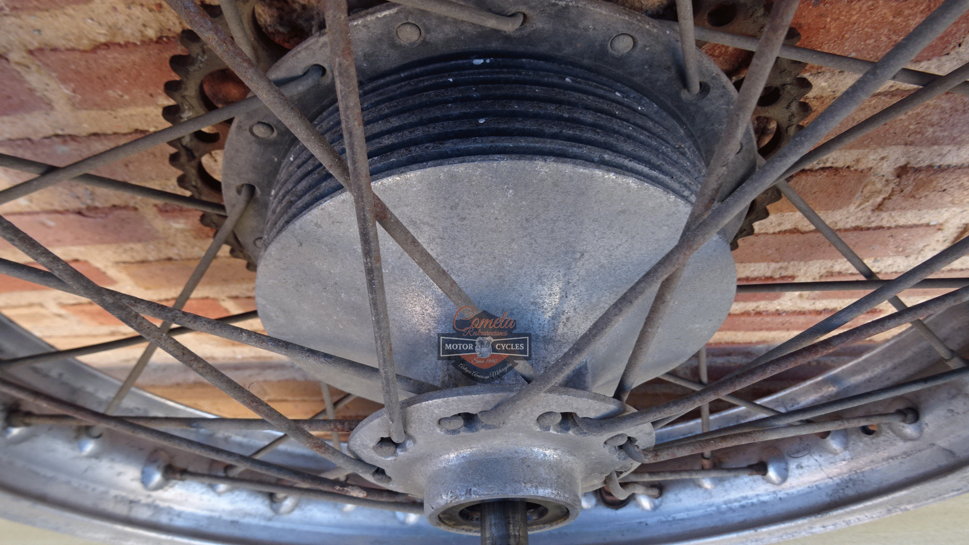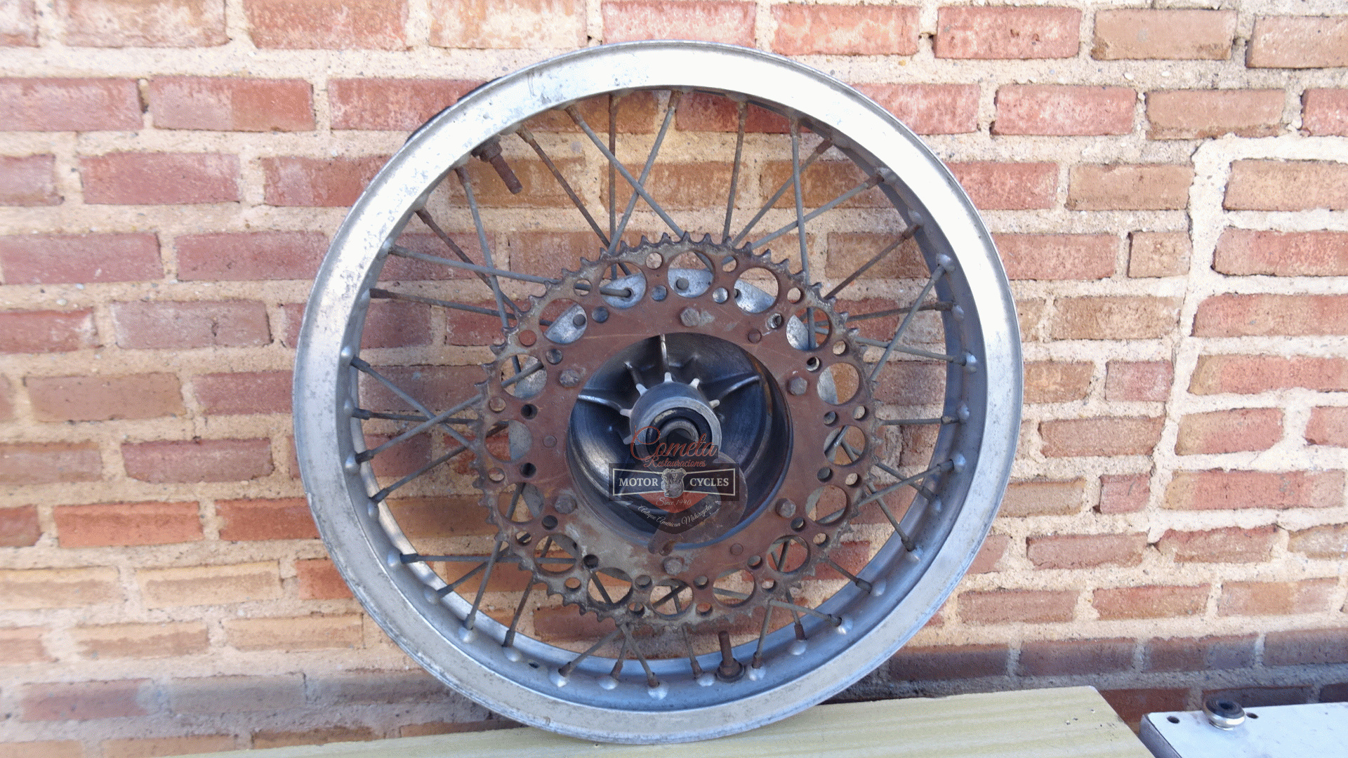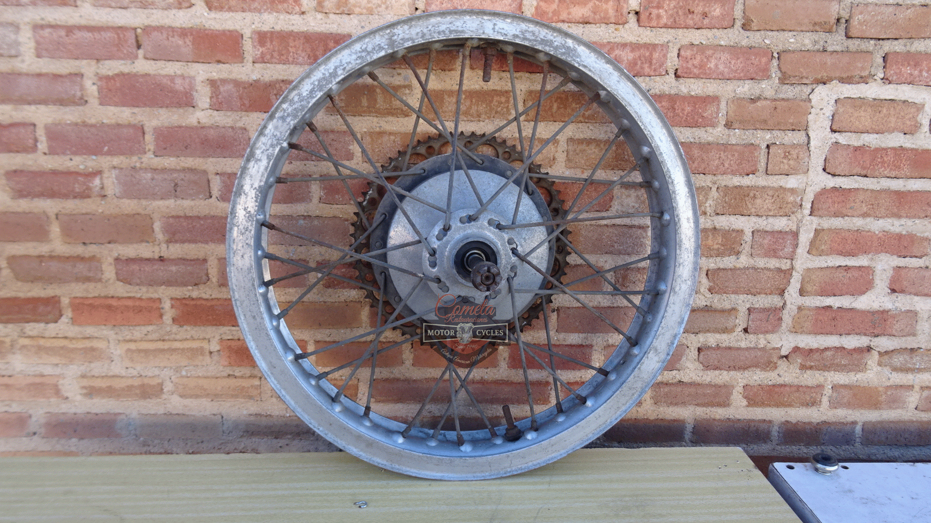 Rear wheel/hub with Akron aluminium rim in good condition for BULTACO ALPINA / PURSANG / MATADOR / SHERPA / OTHERS FROM 1970 TO 1979