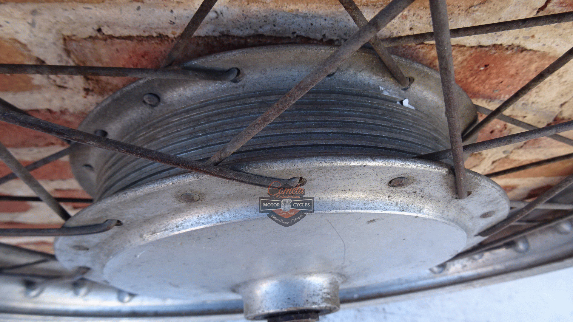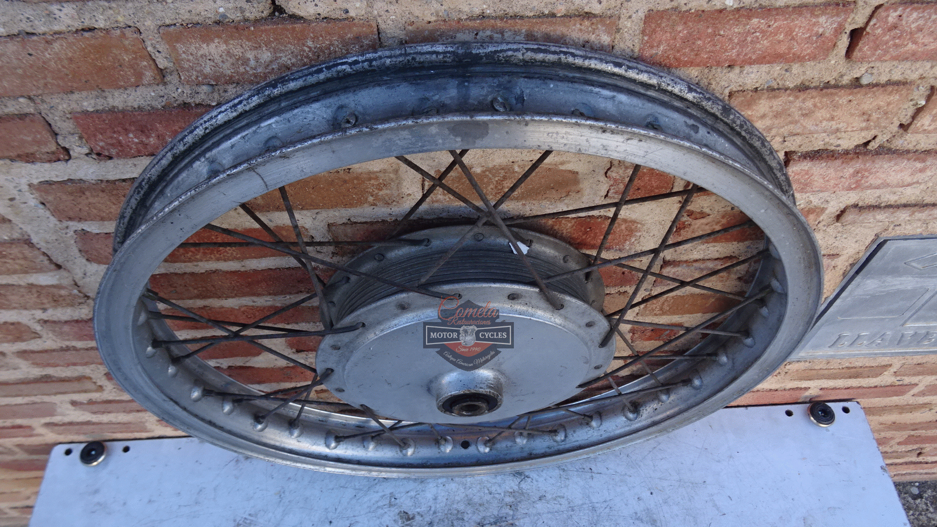 rueda / buje delantero posiblemente es de HARLEY DAVIDSON AERMACCHI AMF SX350 / SX350 SPRINT pero no estamos seguros 100% años 1970 a 1974
